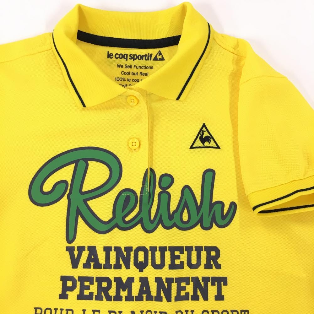 【超美品】ルコック 半袖ポロシャツ イエロー×グリーン 襟袖口ライン プリント レディース S ゴルフウェア le coq sportif