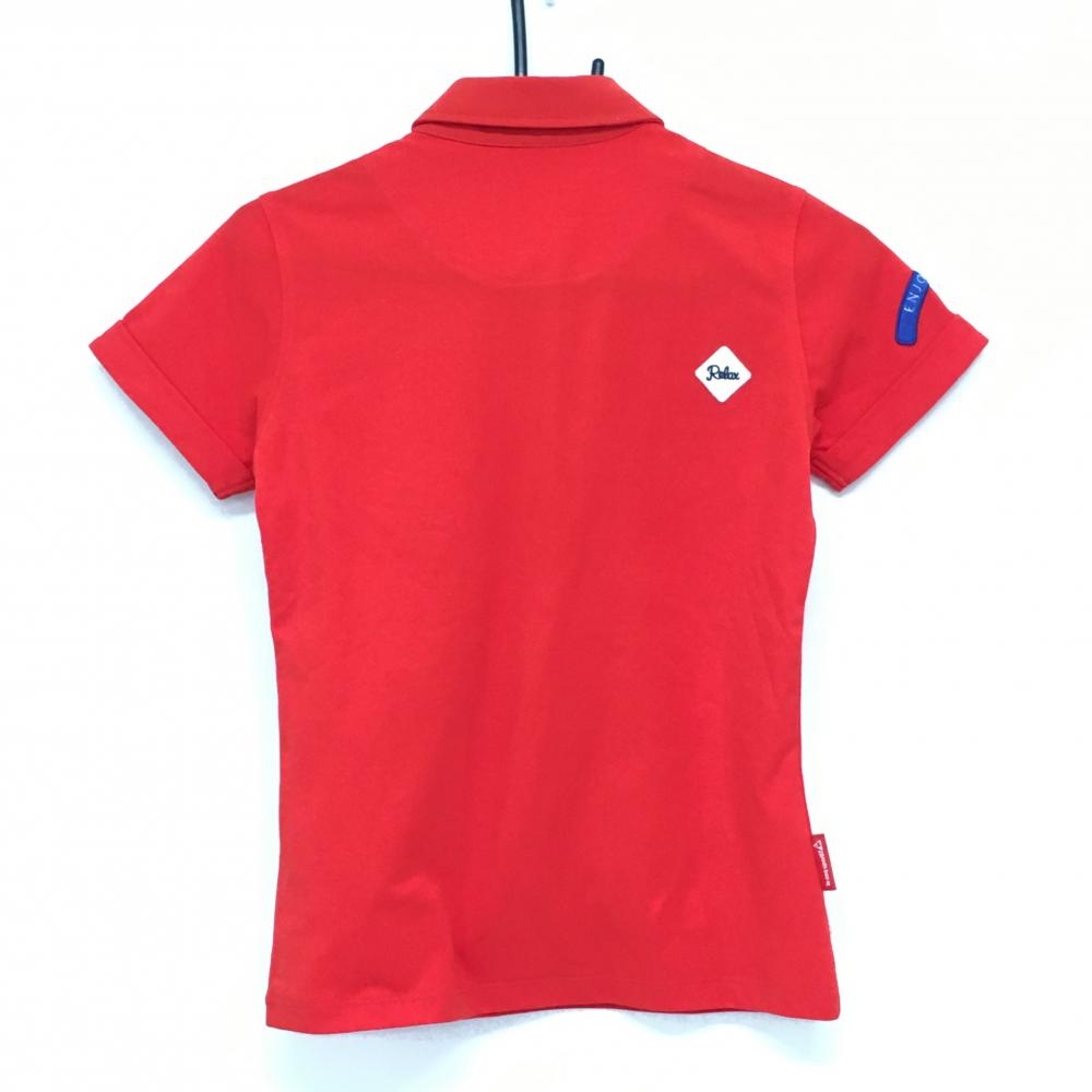 ルコック 半袖ポロシャツ レッド×白 複数ワッペン 胸ポケット レディース S ゴルフウェア le coq sportif