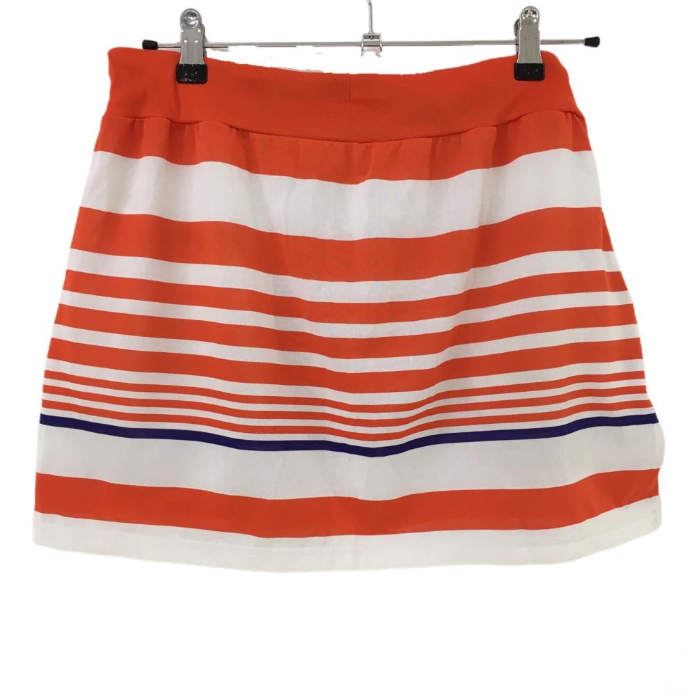 ルコック スカート オレンジ×白 ボーダー ウエスト紐 薄手 レディース L ゴルフウェア le coq sportif