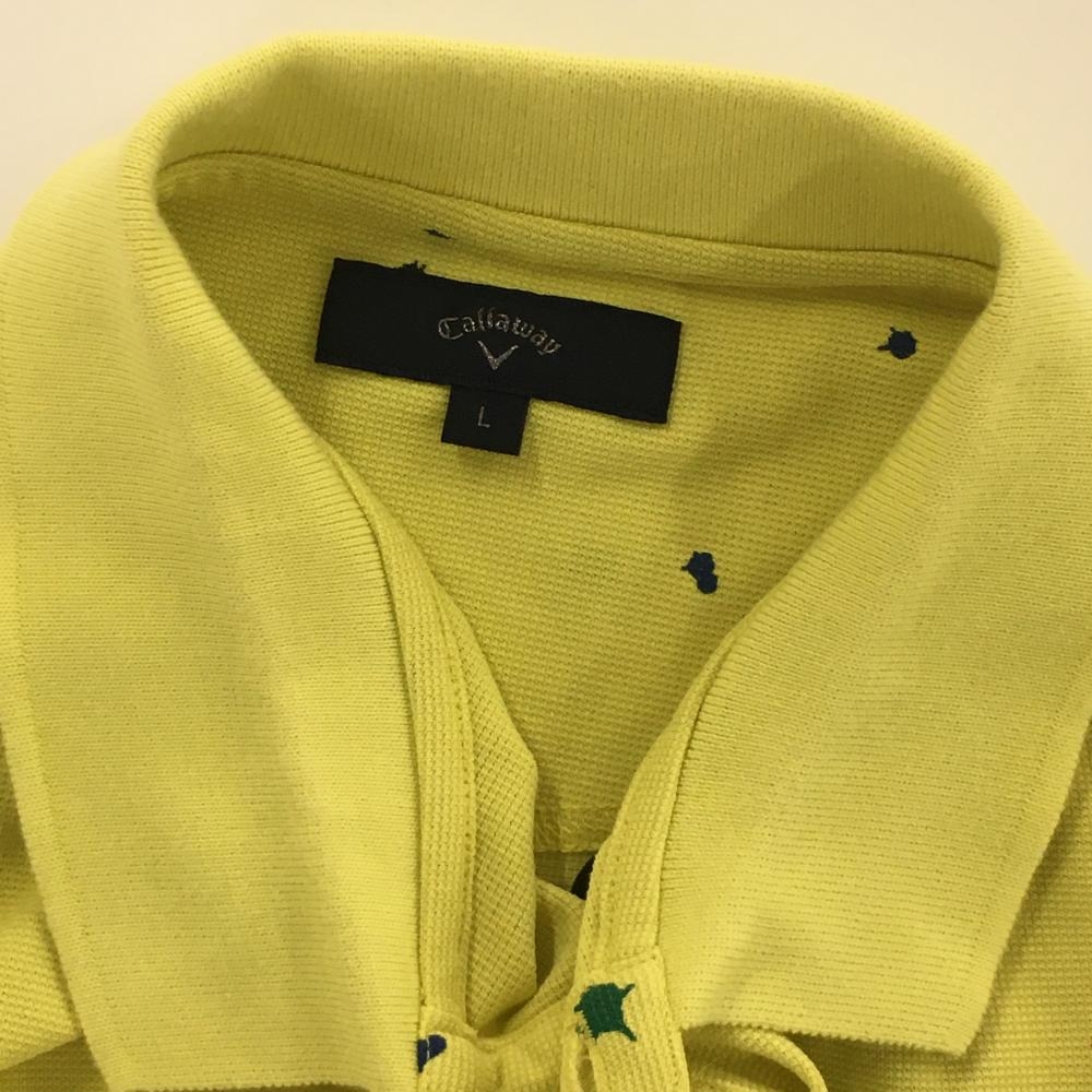 【美品】キャロウェイ 半袖ポロシャツ イエロー×マルチ ペイント柄 メンズ L ゴルフウェア Callaway