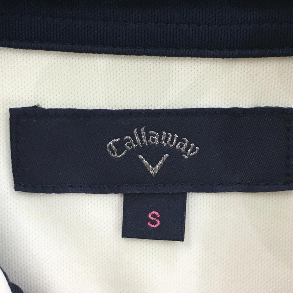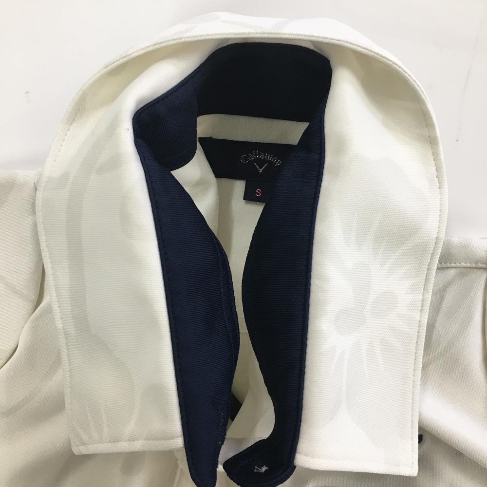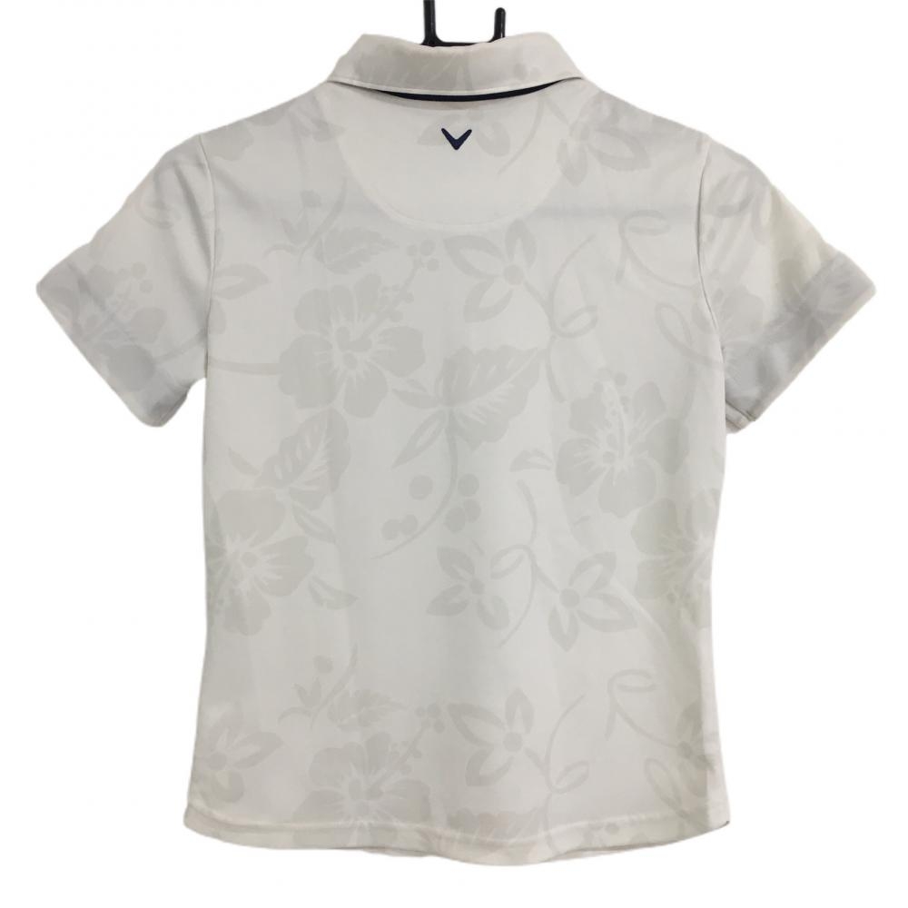 キャロウェイ 半袖ポロシャツ 白×ネイビー ハイビスカス柄 ロゴ刺しゅう レディース S ゴルフウェア Callaway