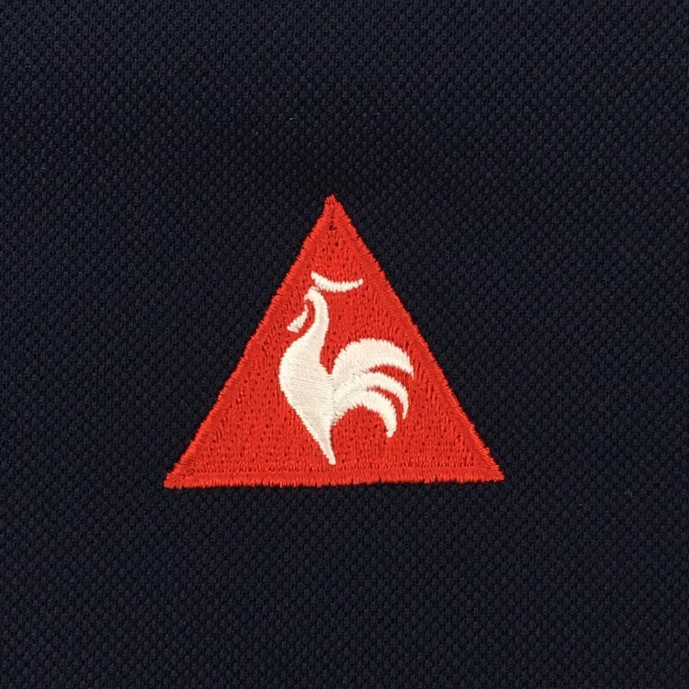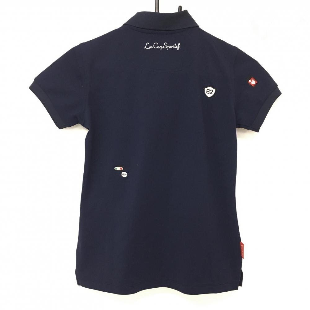 【超美品】ルコック 半袖ポロシャツ ネイビー ゴルフ柄 ロゴ刺しゅう レディース S ゴルフウェア le coq sportif