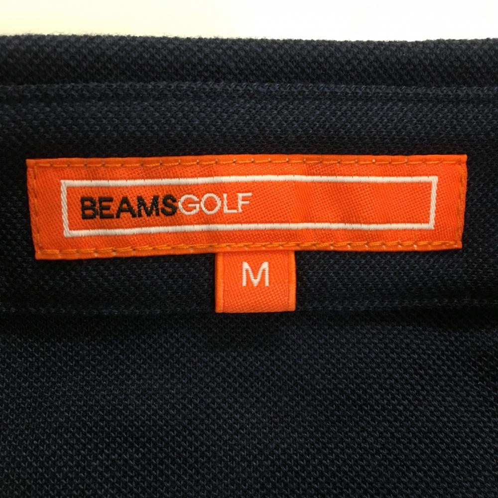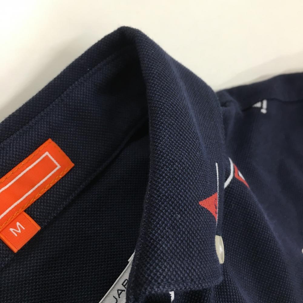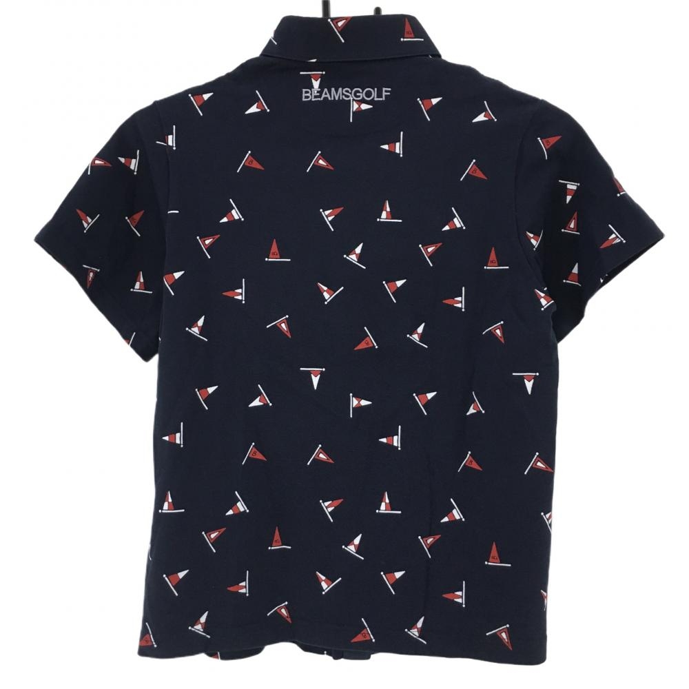 ビームスゴルフ 半袖シャツ ネイビー×レッド フラッグ柄 ロゴワッペン レディース M ゴルフウェア BEAMS GOLF