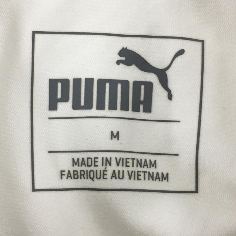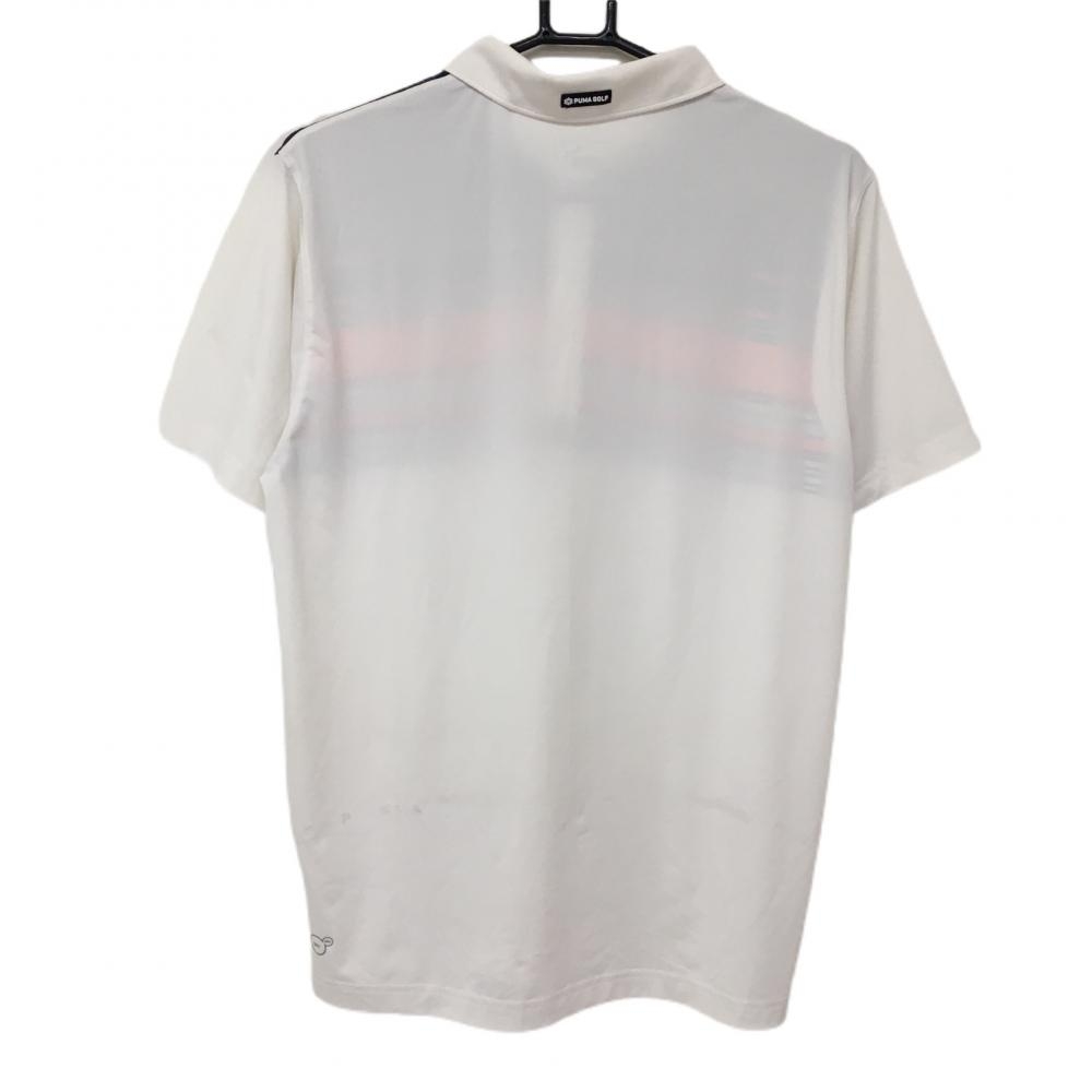 【美品】プーマ 半袖ポロシャツ 白×オレンジ 一部ボーダー ロゴ刺しゅう メンズ M ゴルフウェア PUMA