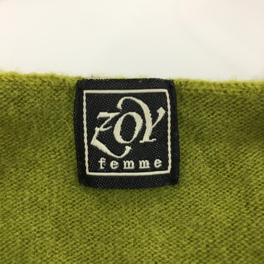 【美品】ゾーイ セーター ライトグリーン 無地 カーディガン風 ニット ラムウール混 レディース M ゴルフウェア ZOY