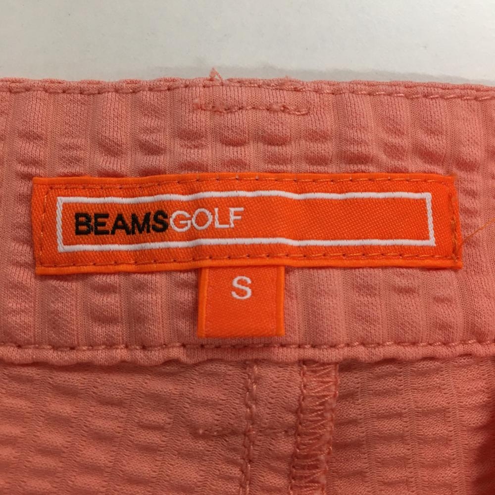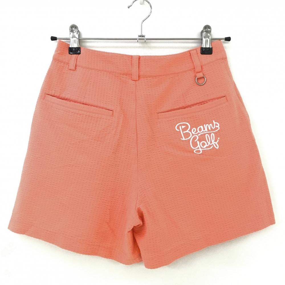 【超美品】ビームスゴルフ キュロットスカート サーモンピンク 織生地 凸凹生地 バックロゴ刺しゅう レディース S ゴルフウェア BEAMS GOLF