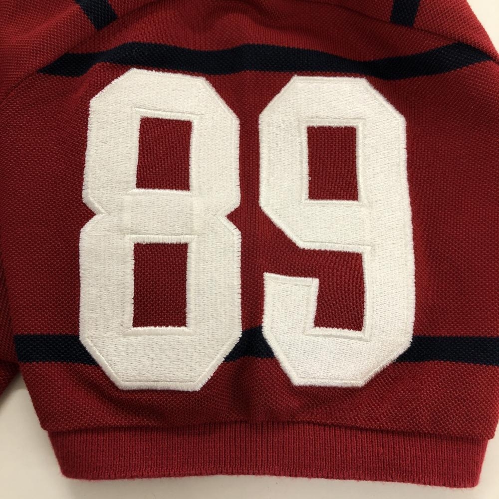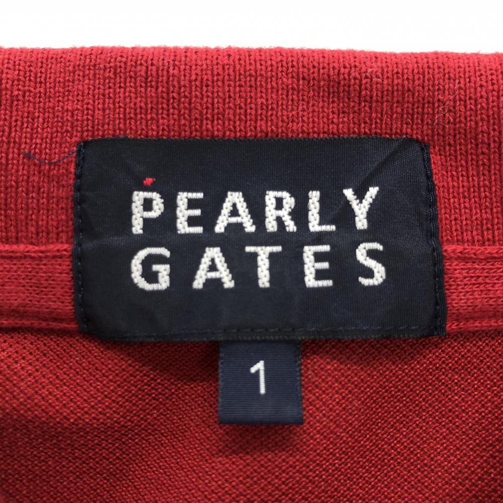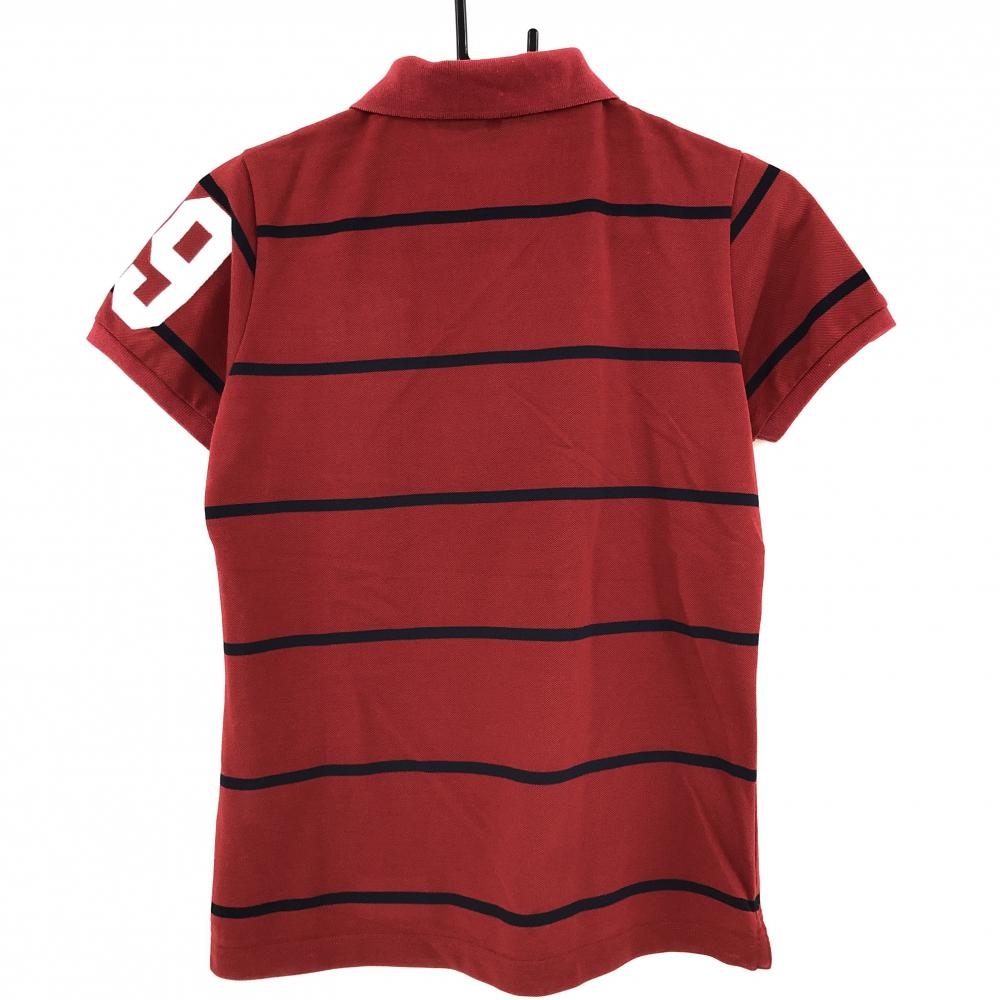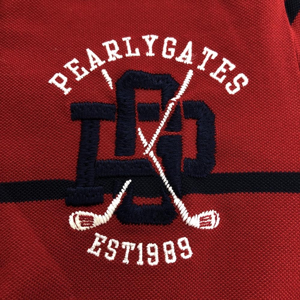 【美品】パーリーゲイツ 半袖ポロシャツ レッド×ネイビー ボーダー ロゴ刺しゅう レディース 1(M) ゴルフウェア PEARLY GATES
