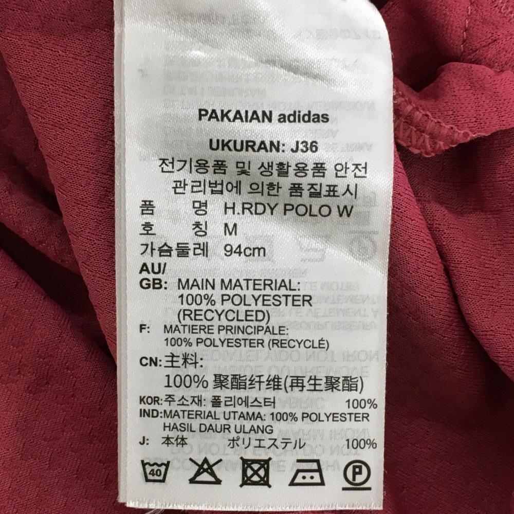 アディダス 半袖ポロシャツ ワインレッド 織生地 ロゴプリント レディース OT ゴルフウェア adidas