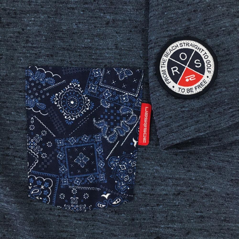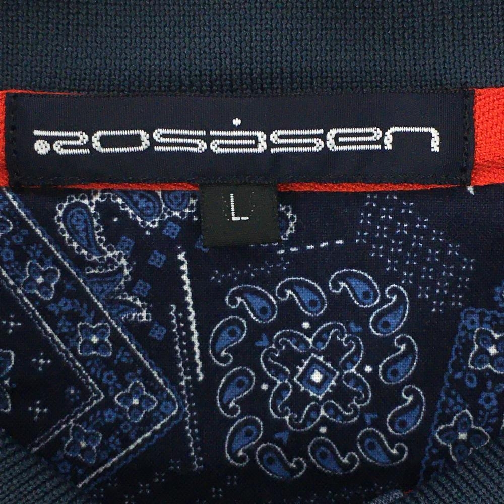 【超美品】ロサーセン 半袖ポロシャツ グレー×ネイビー ポケットペイズリー柄 レディース L ゴルフウェア Rosasen