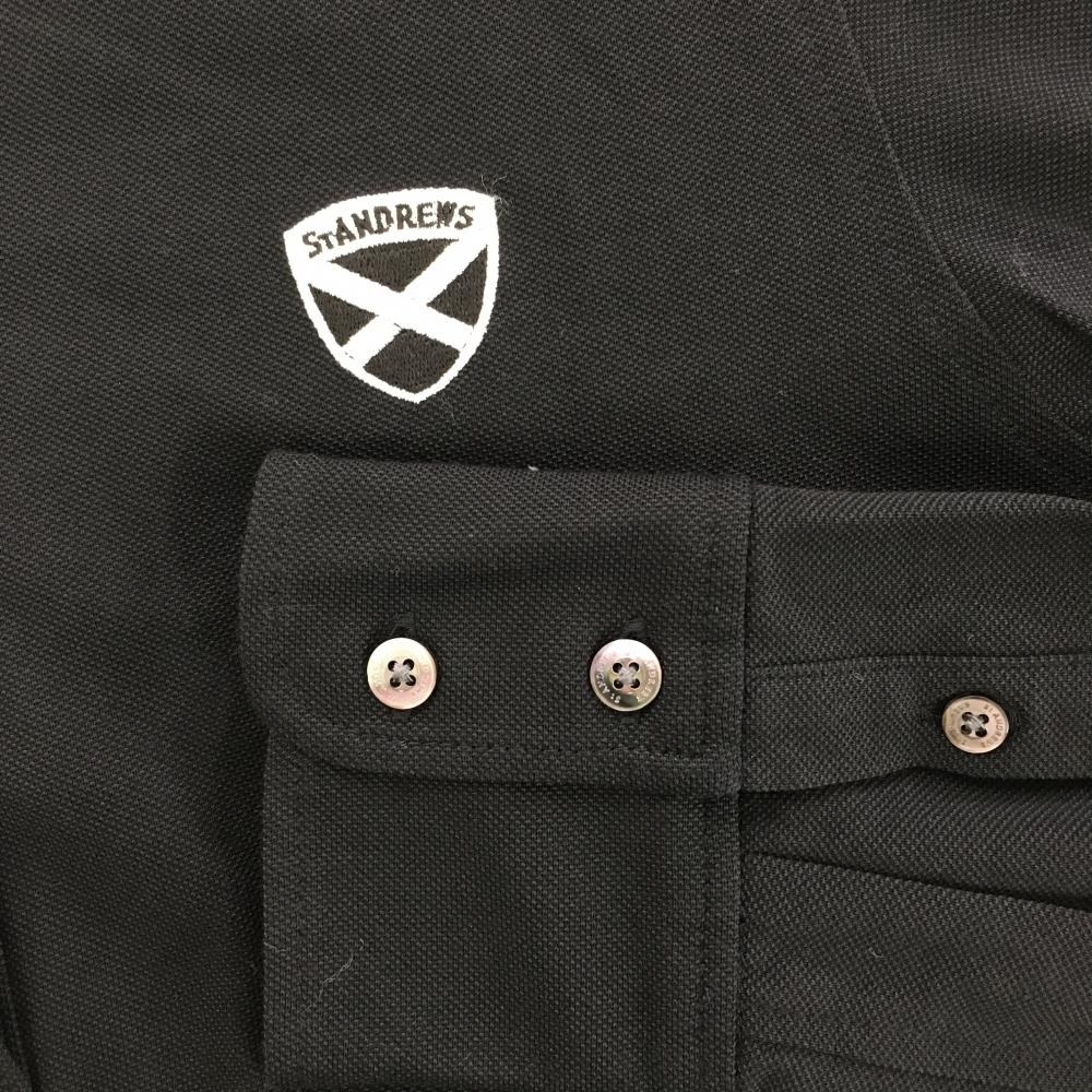 【美品】セントアンドリュース 長袖シャツ 黒×白 ボタンダウン コットン混 レディース S ゴルフウェア St ANDREWS