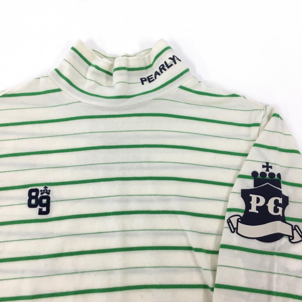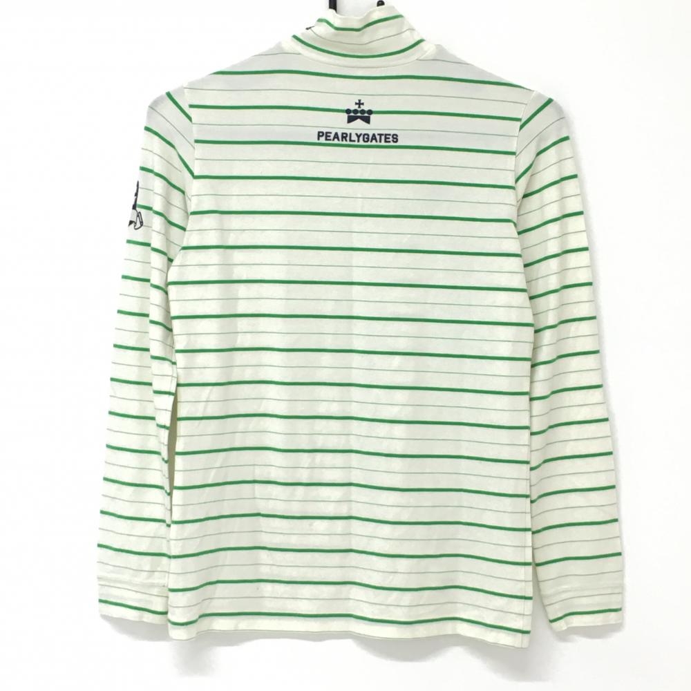 【美品】パーリーゲイツ 長袖ハイネックシャツ 白×ライトグリーン ボーダー 表微起毛 レディース 1(M) ゴルフウェア PEARLY GATES