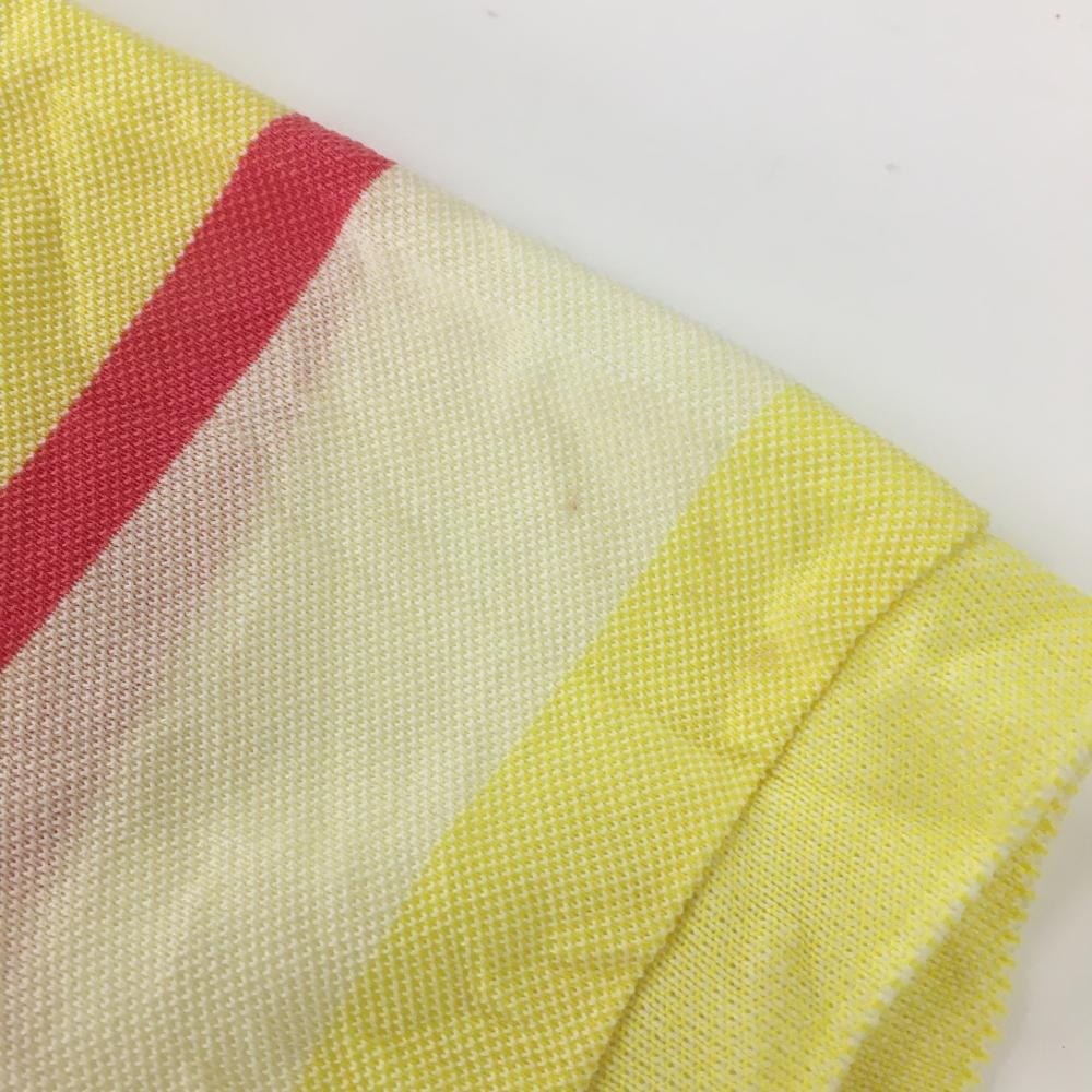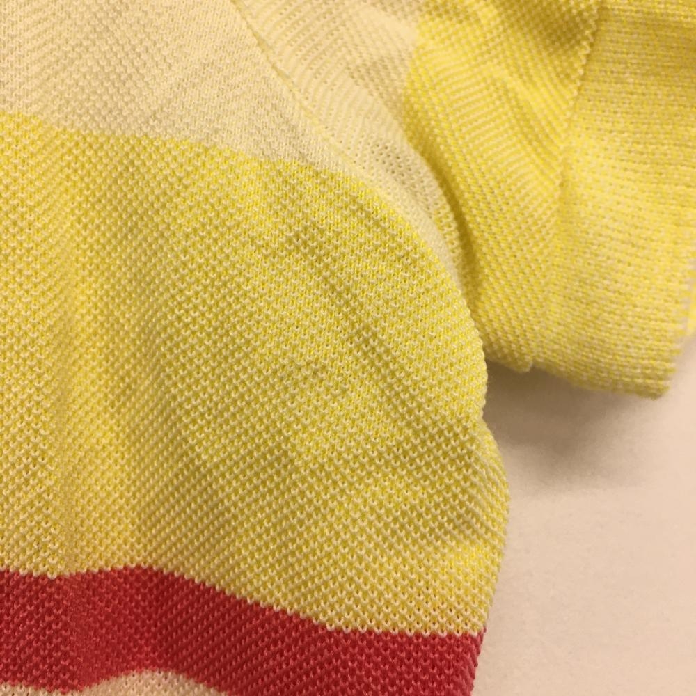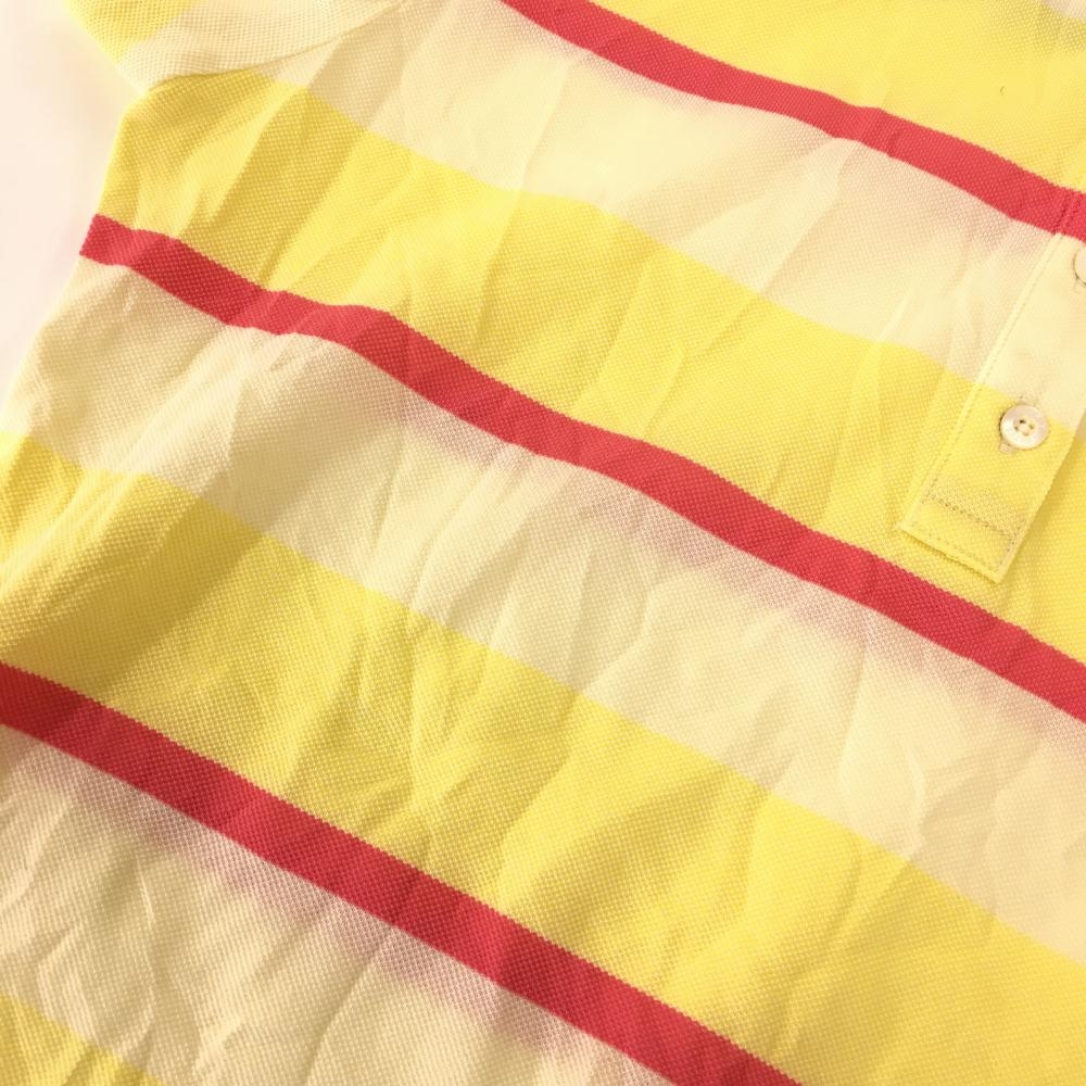パーリーゲイツ 半袖ポロシャツ イエロー×ピンク ボーダー しわ レディース 2(L) ゴルフウェア PEARLY GATES
