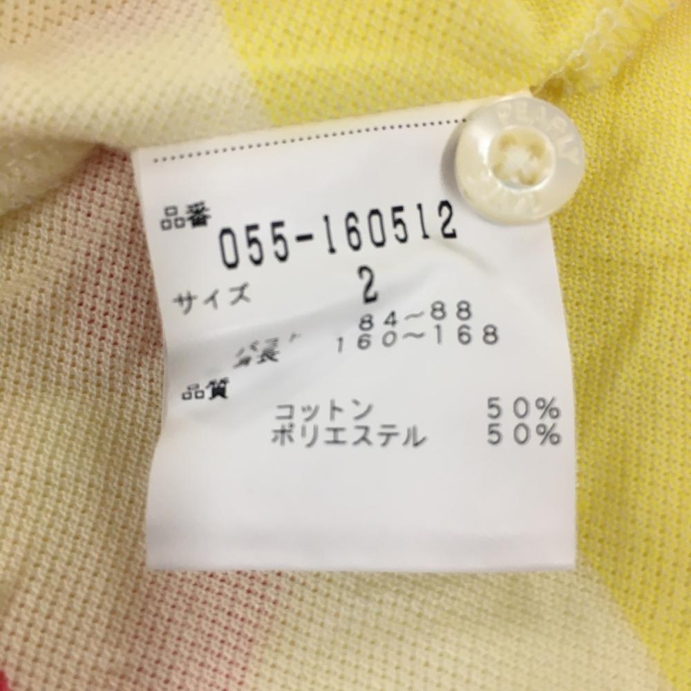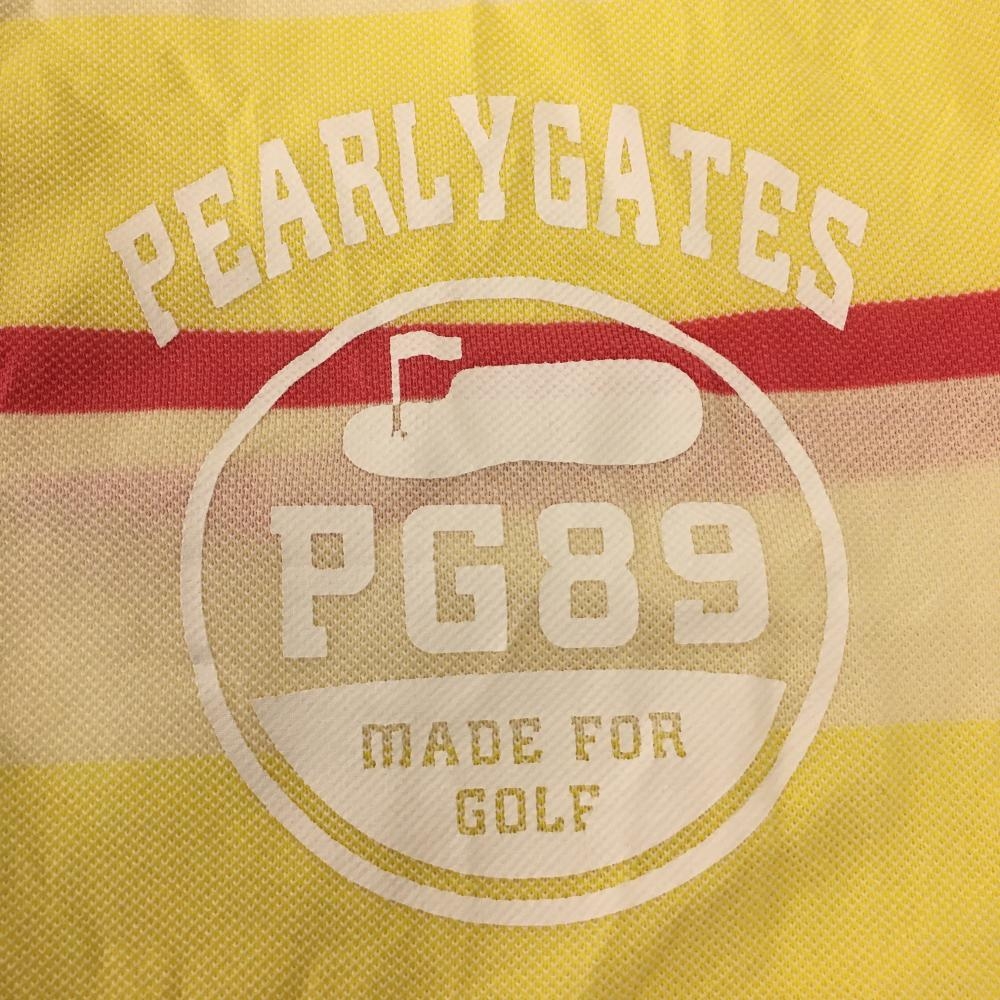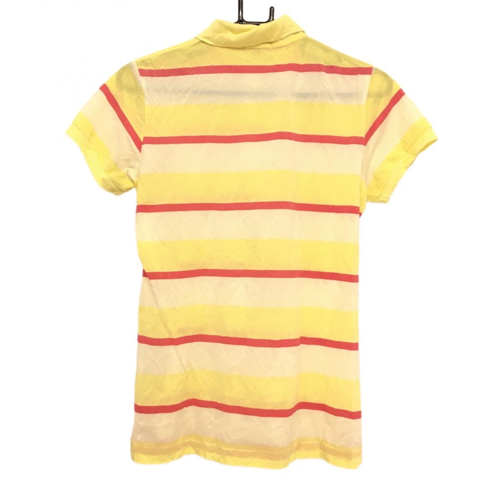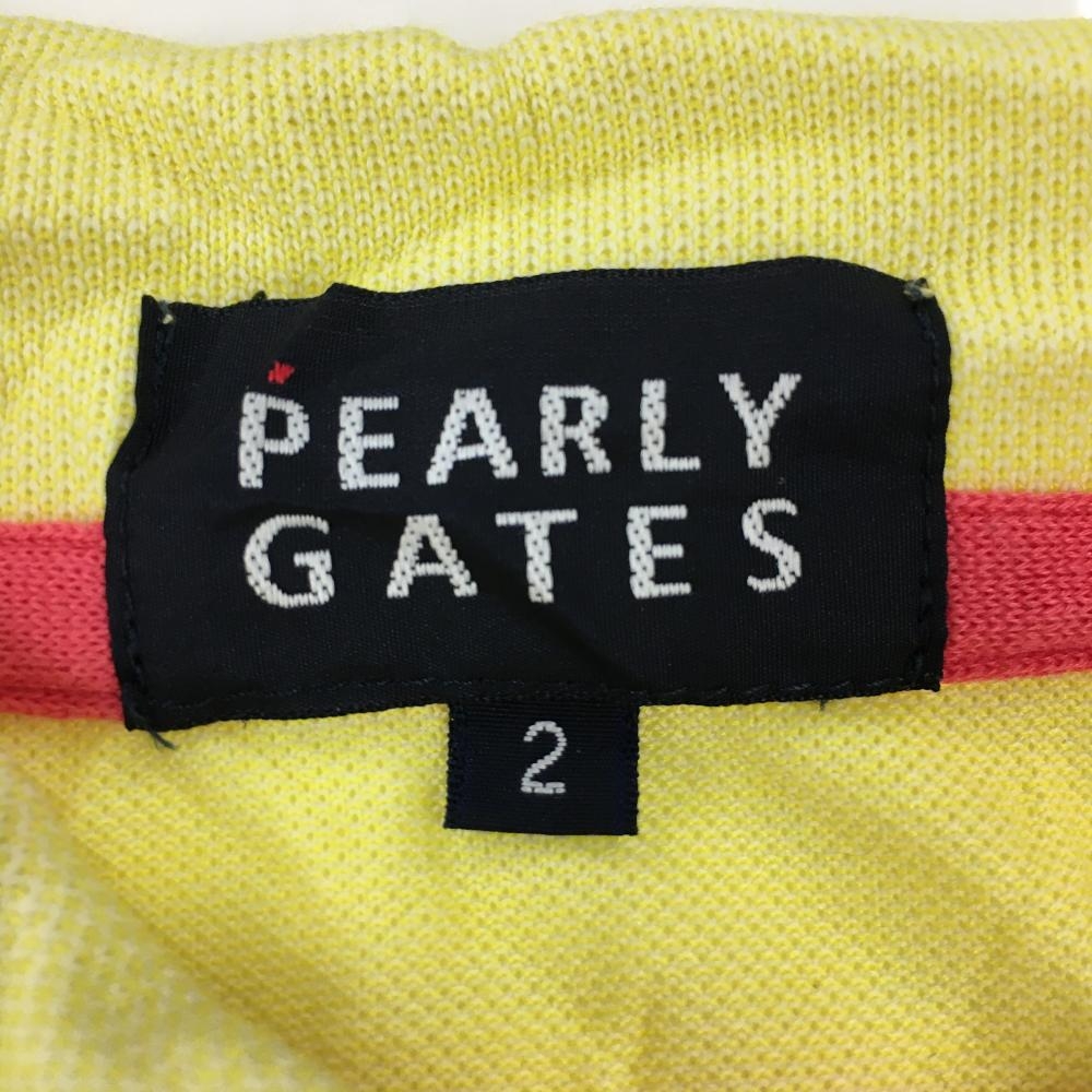 パーリーゲイツ 半袖ポロシャツ イエロー×ピンク ボーダー しわ レディース 2(L) ゴルフウェア PEARLY GATES
