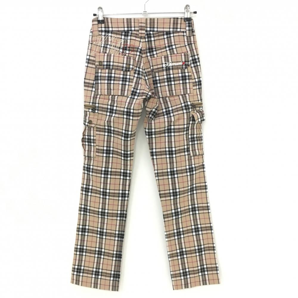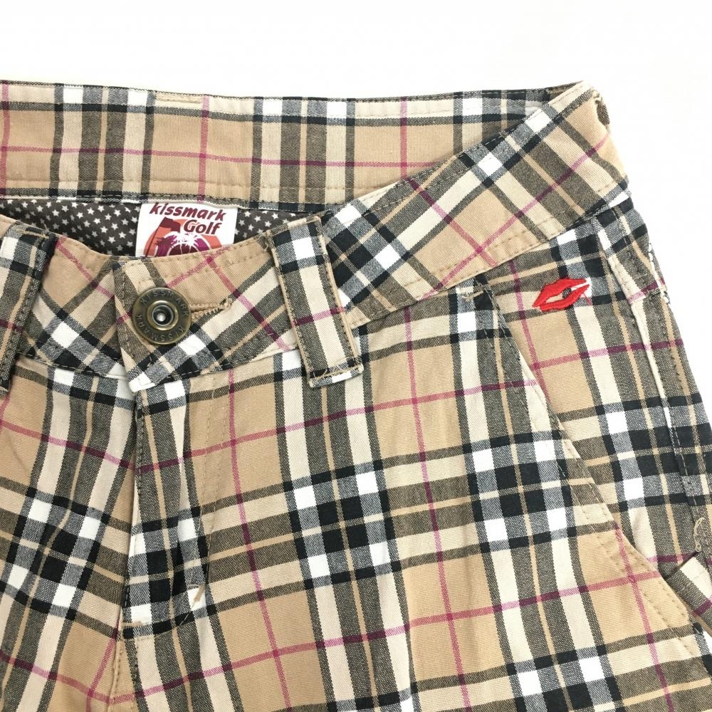 【美品】キスマーク パンツ ベージュ×黒 チェック 複数ポケット レディース 5 ゴルフウェア kissmark
