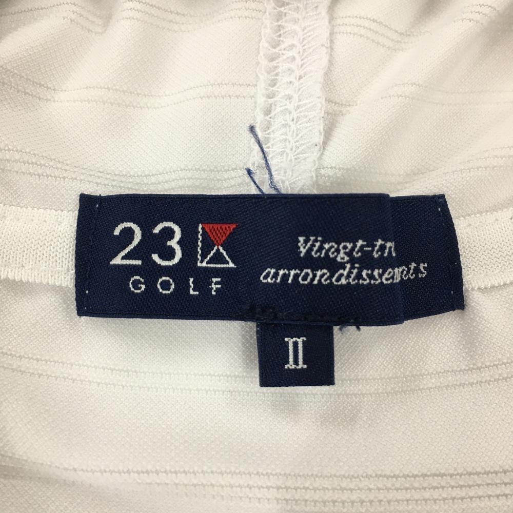 23区ゴルフ ジップパーカー 白 ボーダー透かし編み ブルゾン レディース II(L) ゴルフウェア 23区