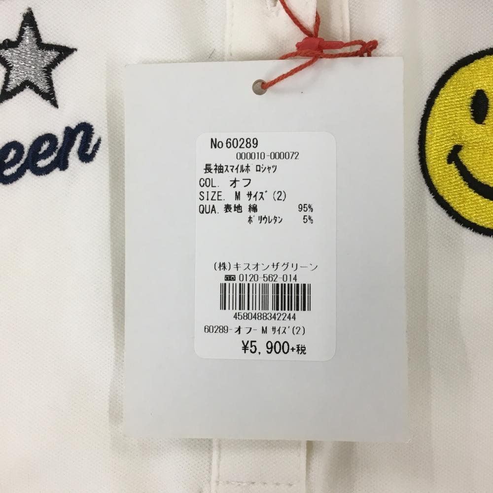 キスオンザグリーン 長袖ポロシャツ 白×イエロー ニコちゃん 紙タグ付 レディース M ゴルフウェア kiss on the green