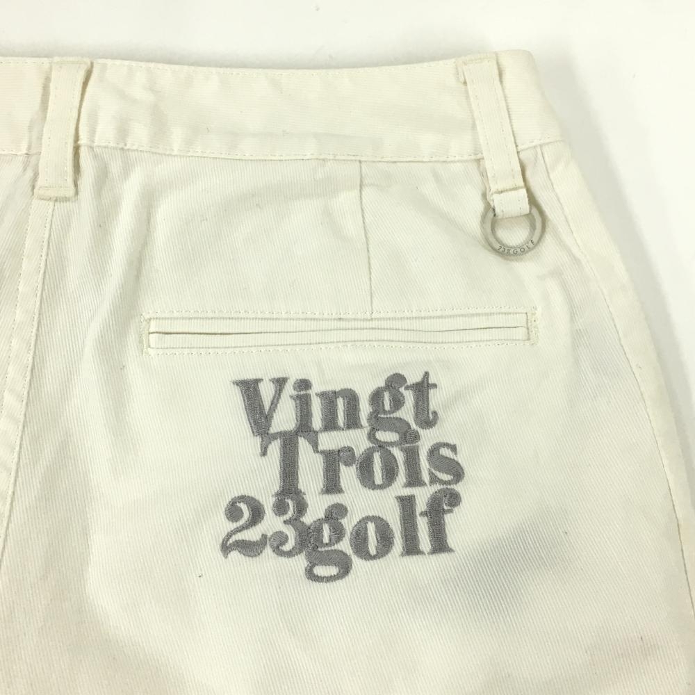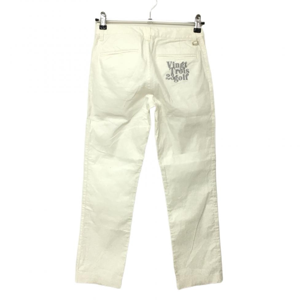 23区ゴルフ パンツ 白 ロゴグレー ストレッチ レディース 58(XS) ゴルフウェア 23区