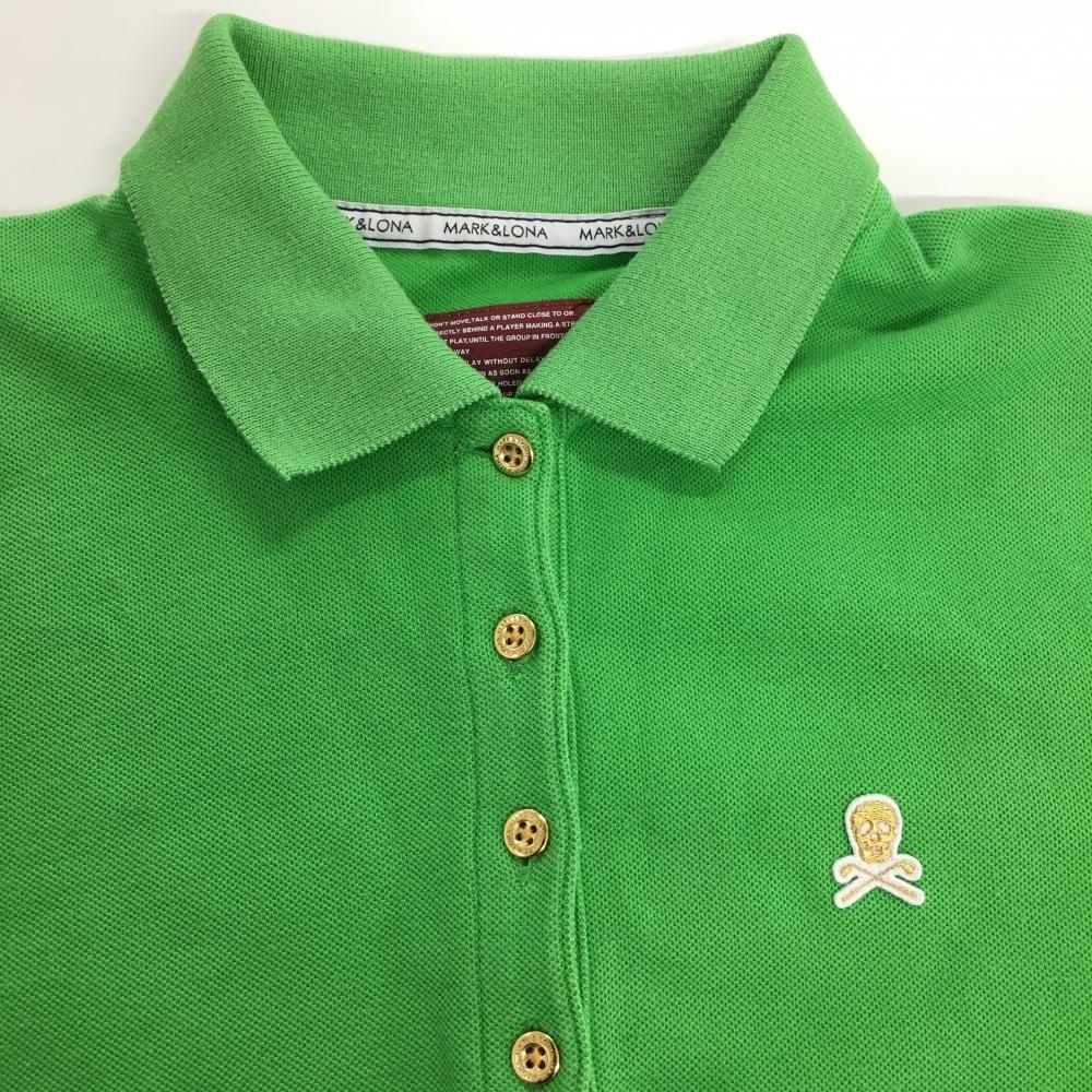 マークアンドロナ 半袖ポロシャツ グリーン スカル刺しゅう レディース S ゴルフウェア MARK&LONA