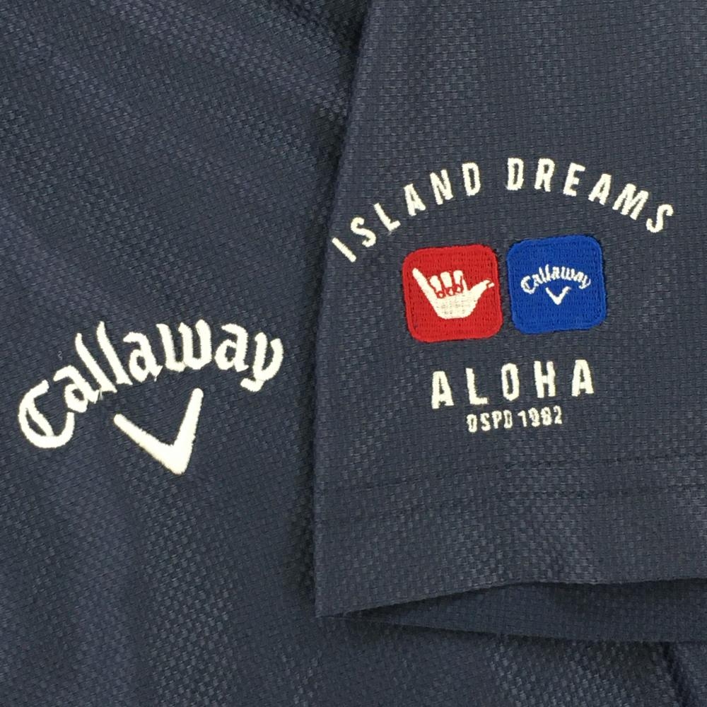 キャロウェイ 半袖ポロシャツ ネイビー 織生地 襟裏プリント メンズ M ゴルフウェア Callaway