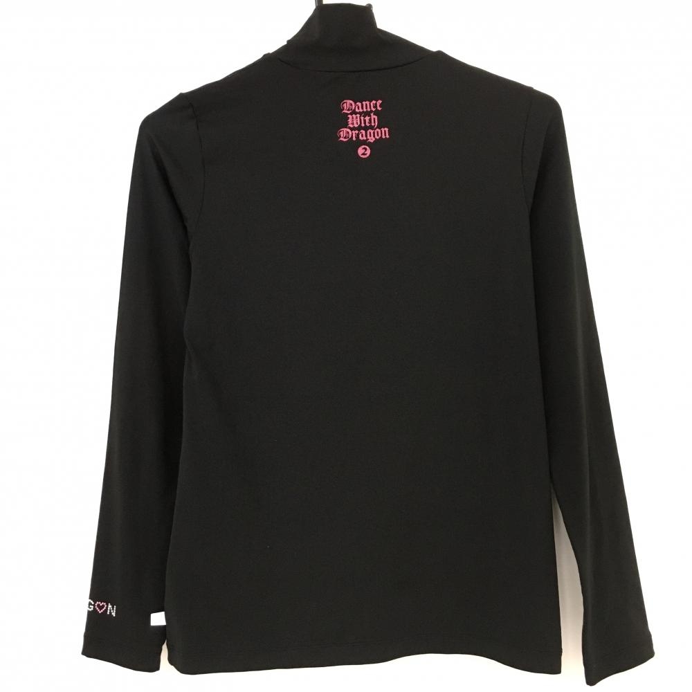 【美品】ダンスウィズドラゴン ハイネックインナーシャツ 黒×ピンク ネックスマイル レディース 2(M) ゴルフウェア Dance With Dragon