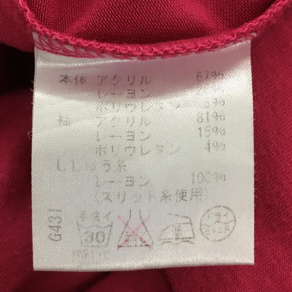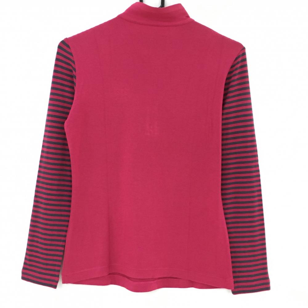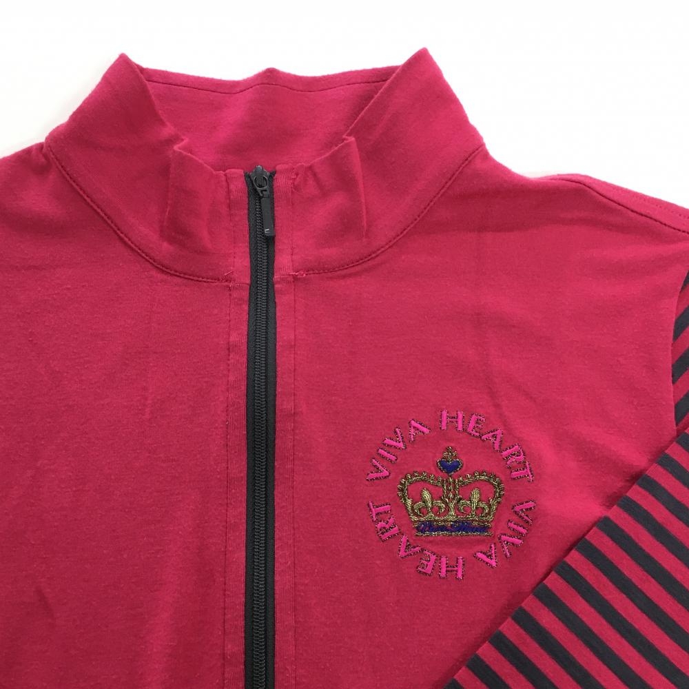 【美品】ビバハート 長袖ハイネックシャツ レッドピンク×グレー ハーフジップ 袖ボーダー レディース 40(M) ゴルフウェア VIVA HEART
