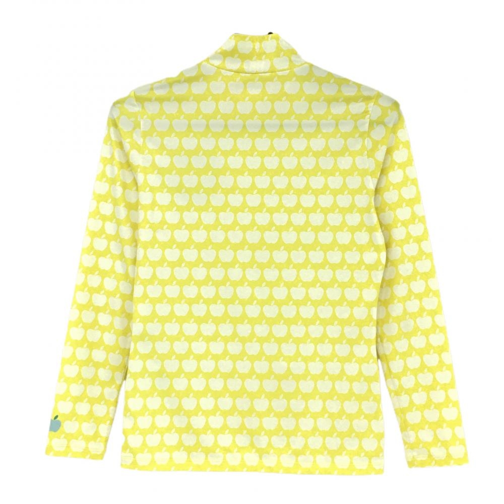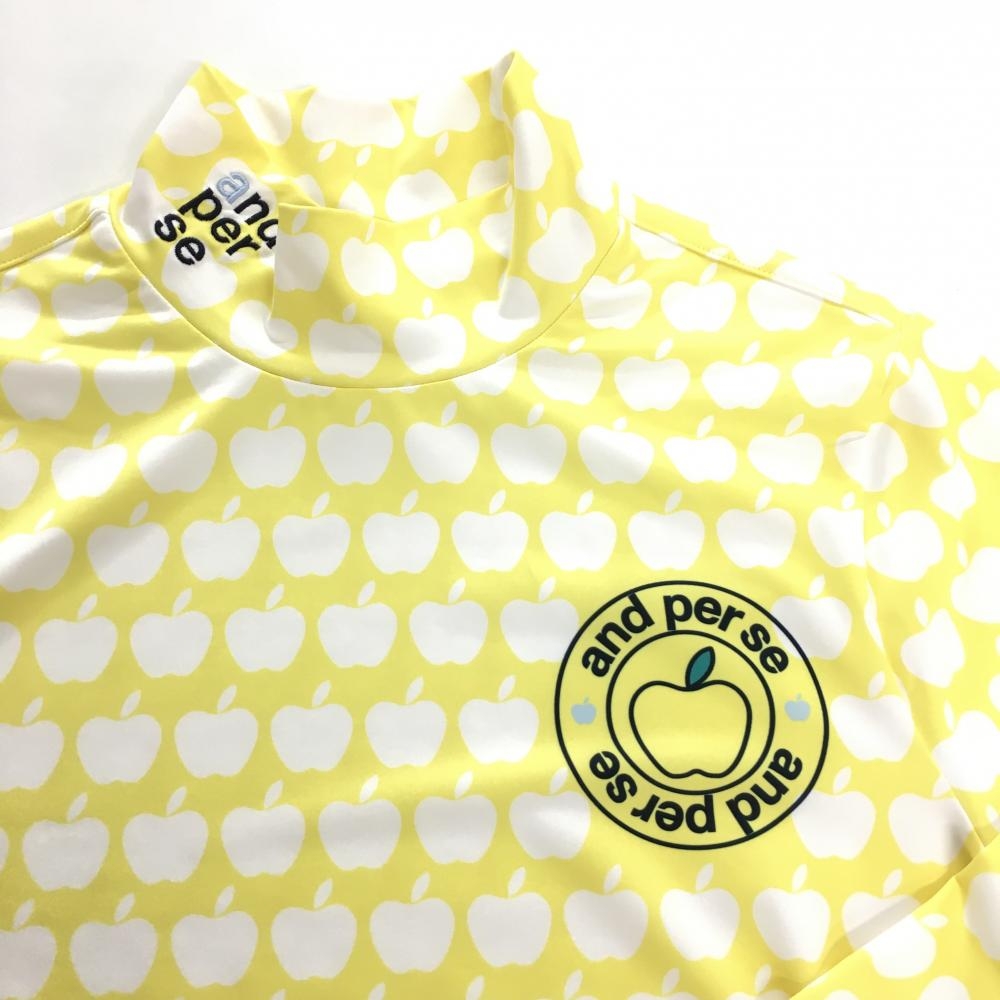 【超美品】アンパスィ 長袖ハイネックシャツ イエロー×白 リンゴ柄 ネックロゴ刺しゅう レディース S ゴルフウェア and per se