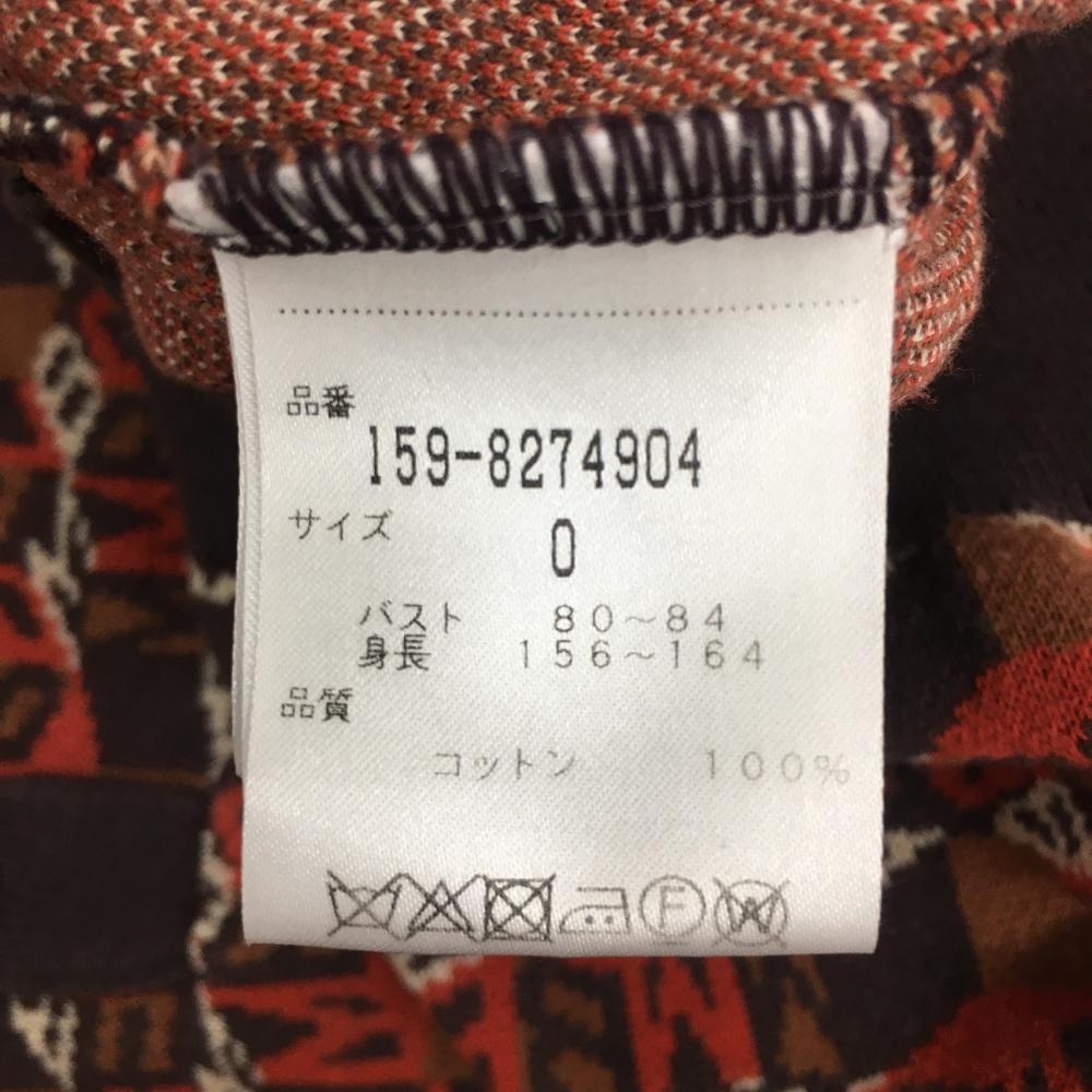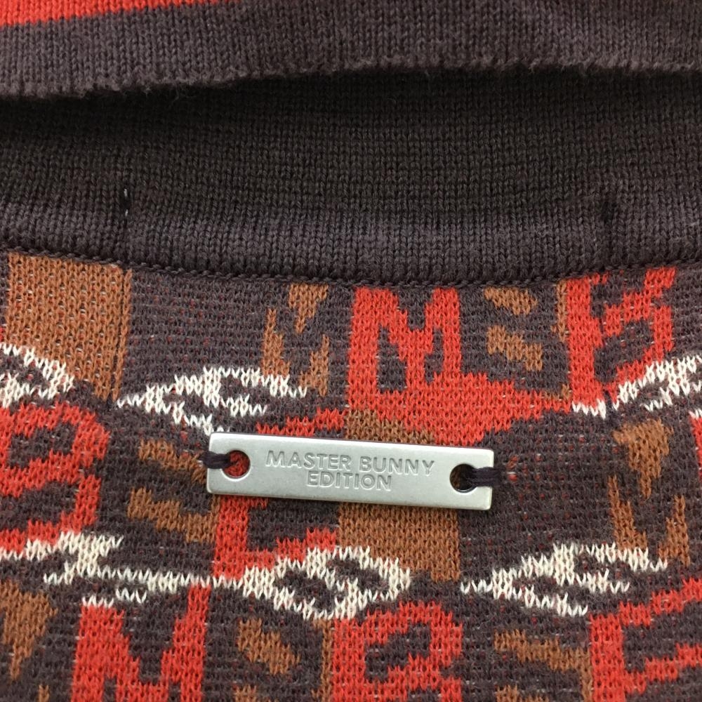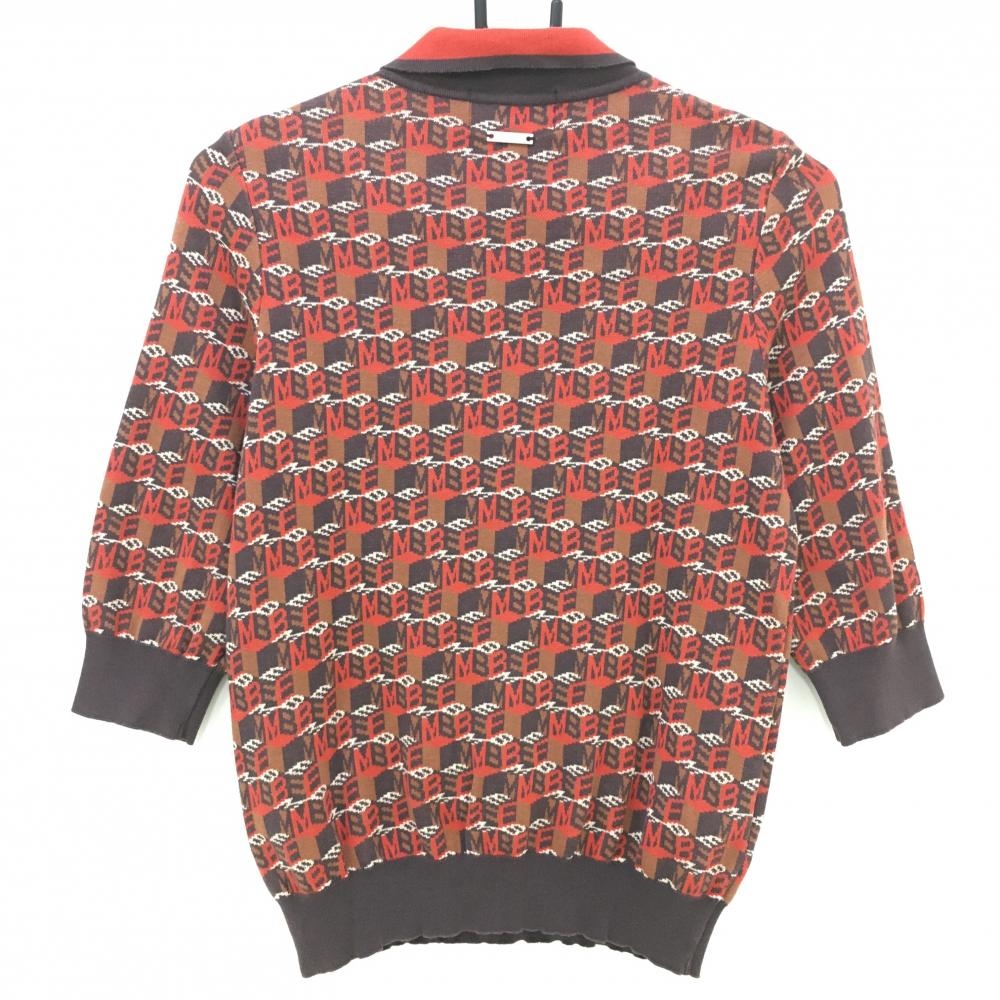 マスターバニー 七分袖ニットポロシャツ レッド×ブラウン ロゴ総柄 コットン100% レディース 0(S) ゴルフウェア MASTER BUNNY EDITION