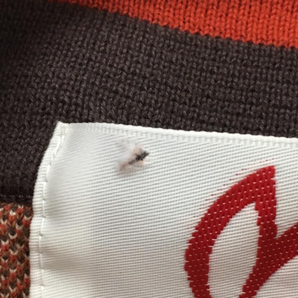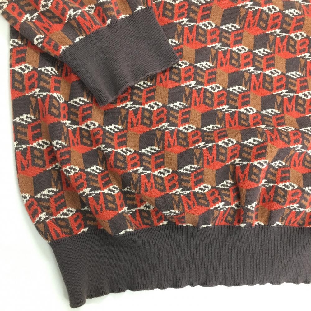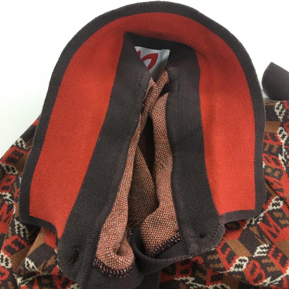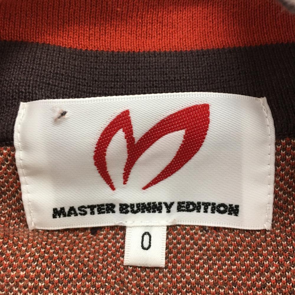 マスターバニー 七分袖ニットポロシャツ レッド×ブラウン ロゴ総柄 コットン100% レディース 0(S) ゴルフウェア MASTER BUNNY EDITION