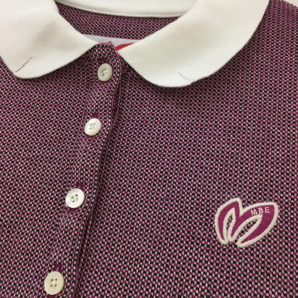 【美品】マスターバニー 半袖ポロシャツ ピンクパープル系×白 地模様 丸襟 レディース 0(S) ゴルフウェア MASTER BUNNY EDITION