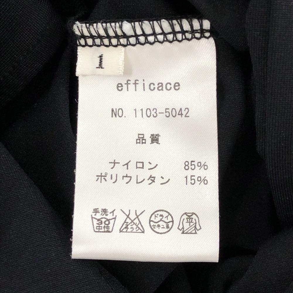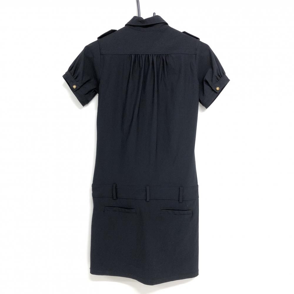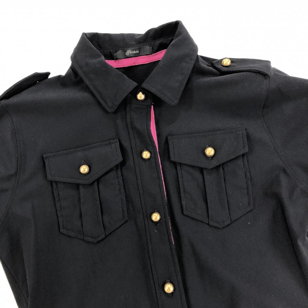【美品】エフィカス 半袖ポロワンピース 黒 ゴールドボタン 無地 胸ポケット レディース 1(S) ゴルフウェア efficace