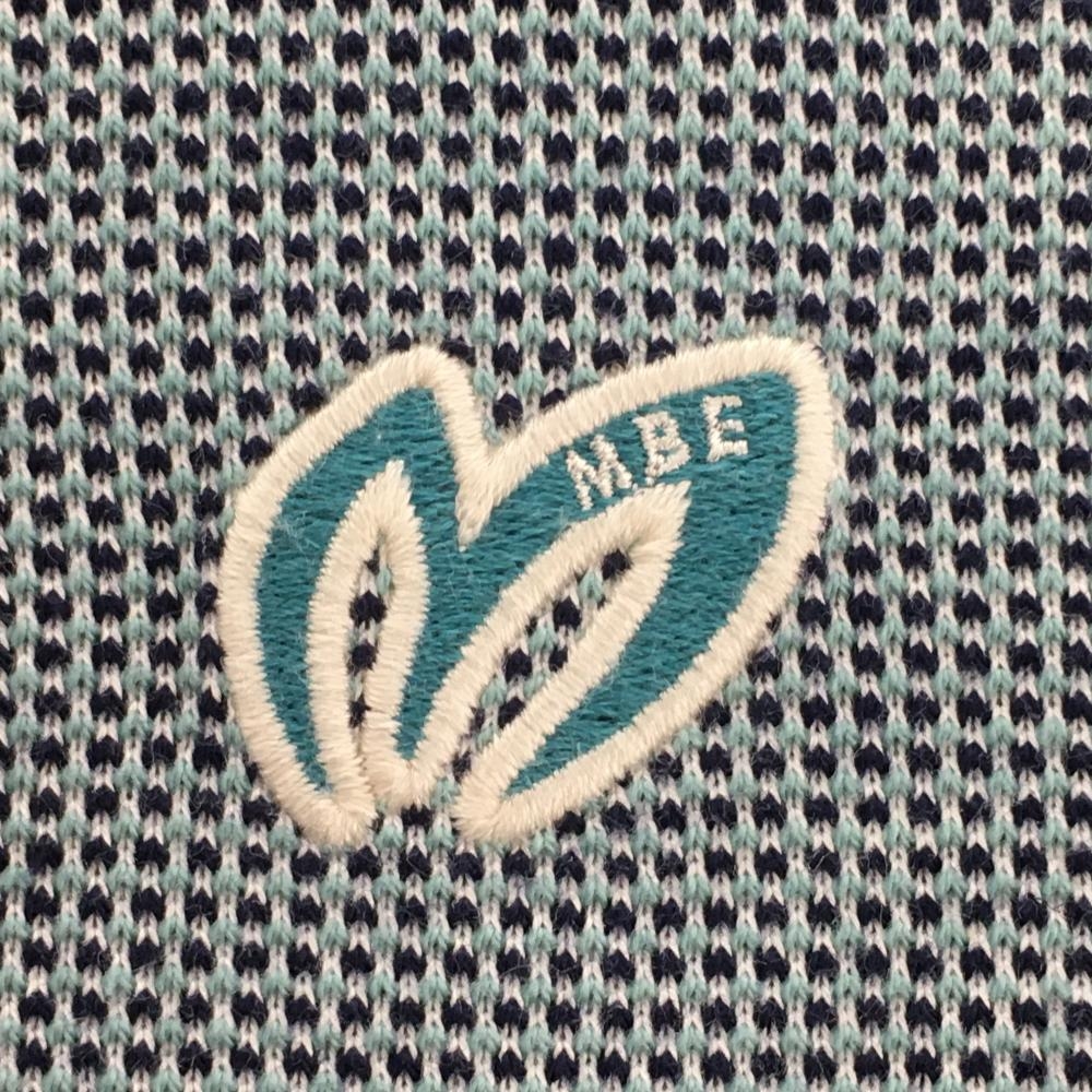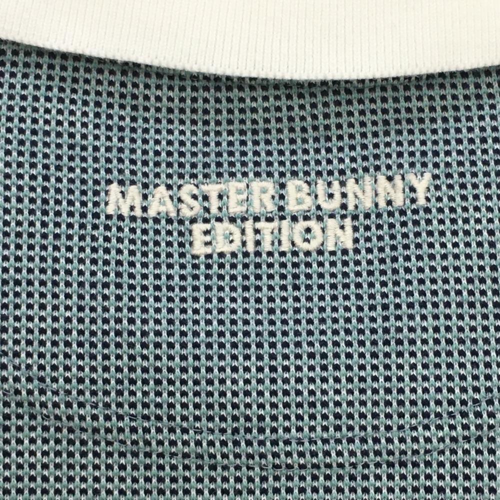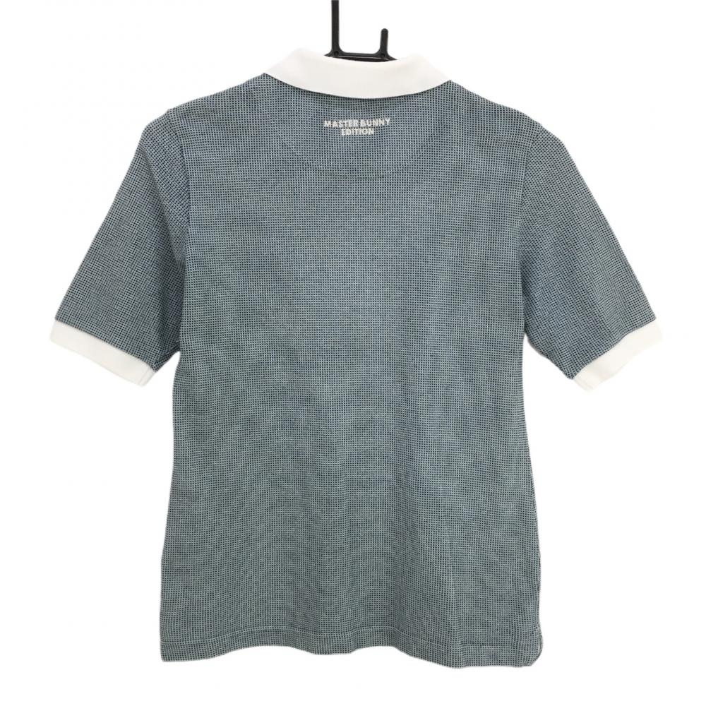 【美品】マスターバニー 半袖ポロシャツ ライトブルー系×ネイビー 地模様 丸襟 レディース 0(S) ゴルフウェア MASTER BUNNY EDITION
