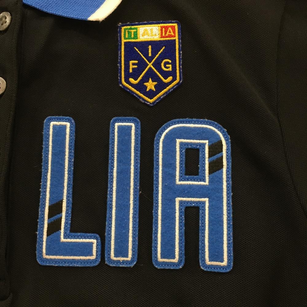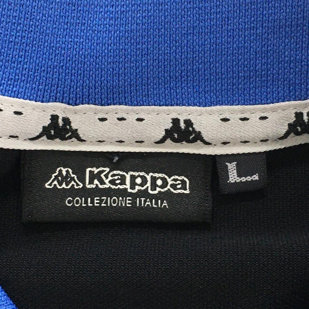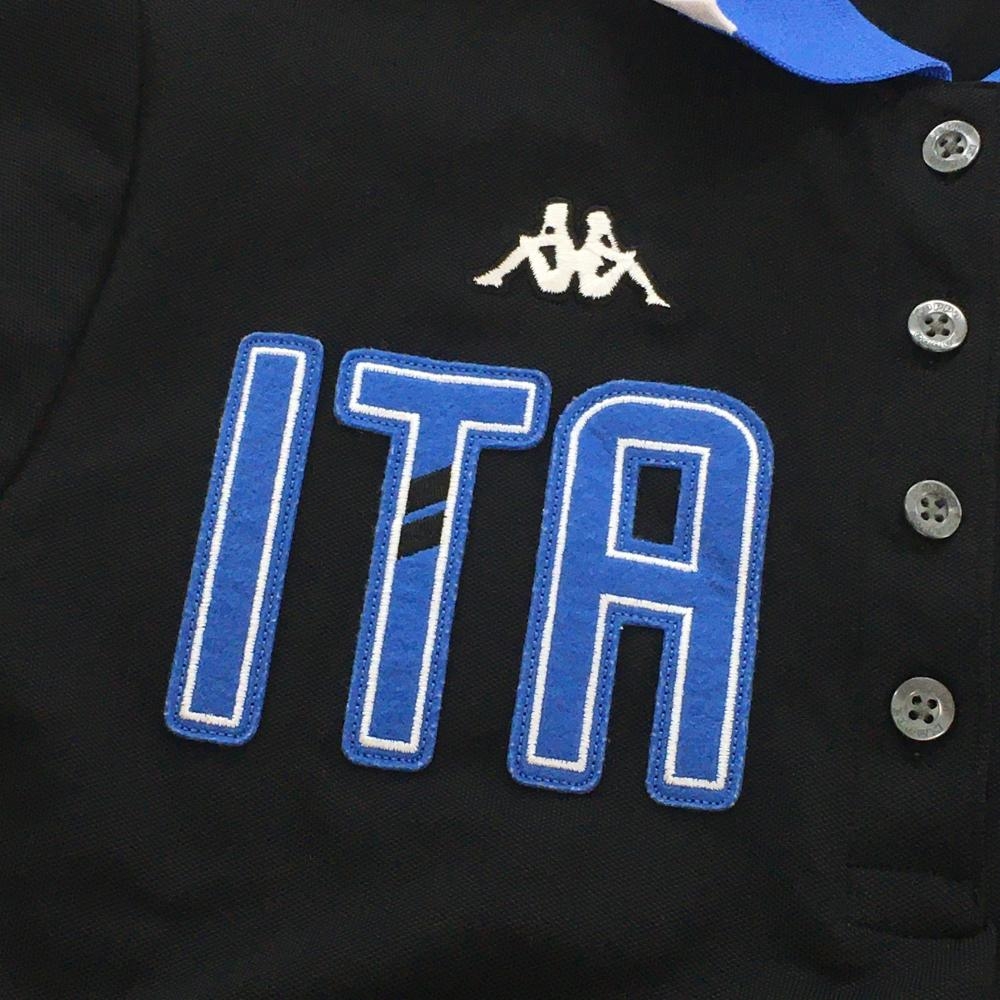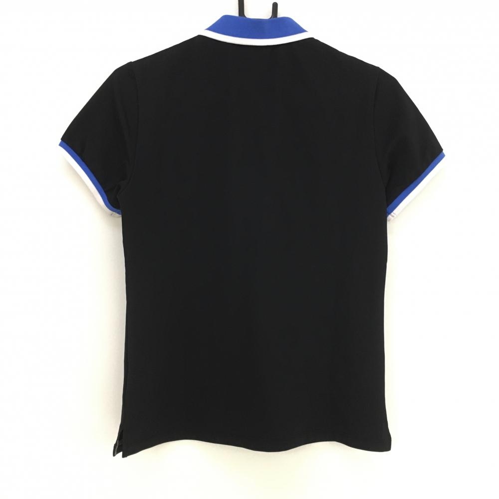 【超美品】カッパ 半袖ポロシャツ 黒×ブルー フロントITALIA 襟・袖口ライン レディース L ゴルフウェア Kappa
