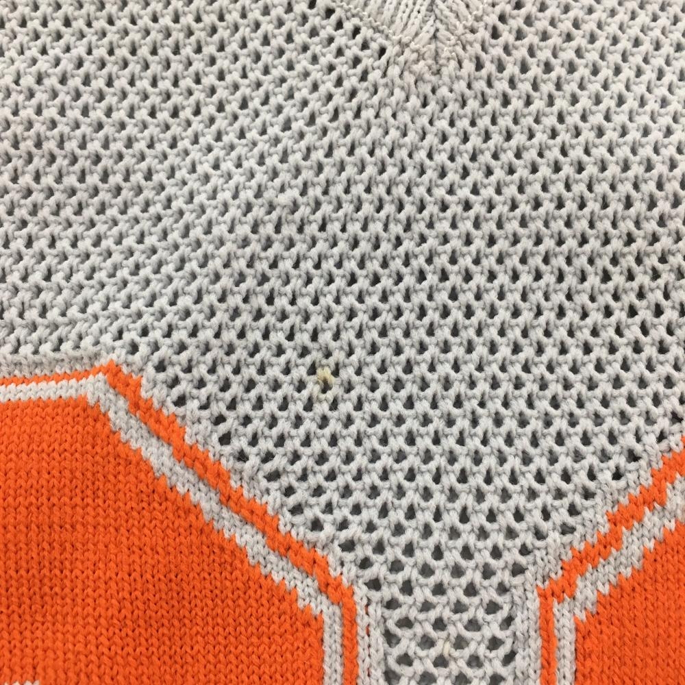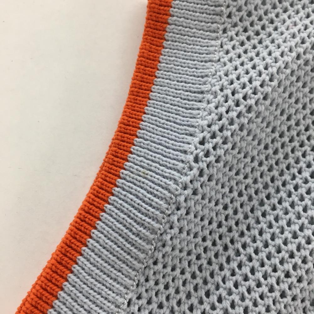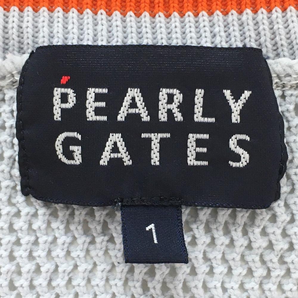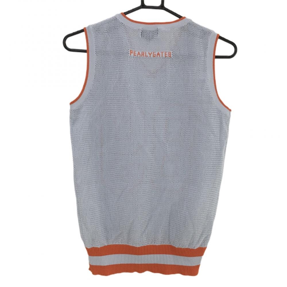 【美品】パーリーゲイツ ニットベスト グレー×オレンジ 透かし編み Vネック レディース 1(M) ゴルフウェア PEARLY GATES