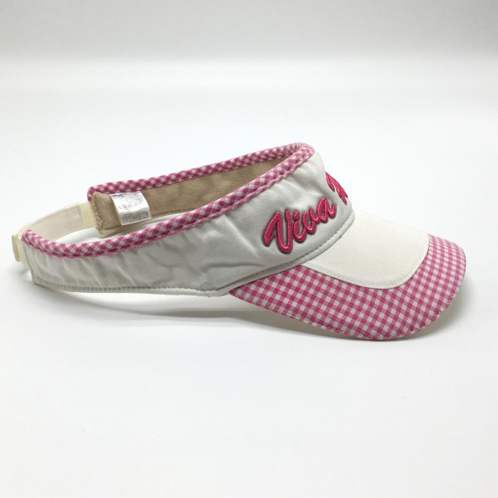 ビバハート サンバイザー 白×ピンク チェック ロゴ刺しゅう レディース 40(M) ゴルフウェア VIVA HEART