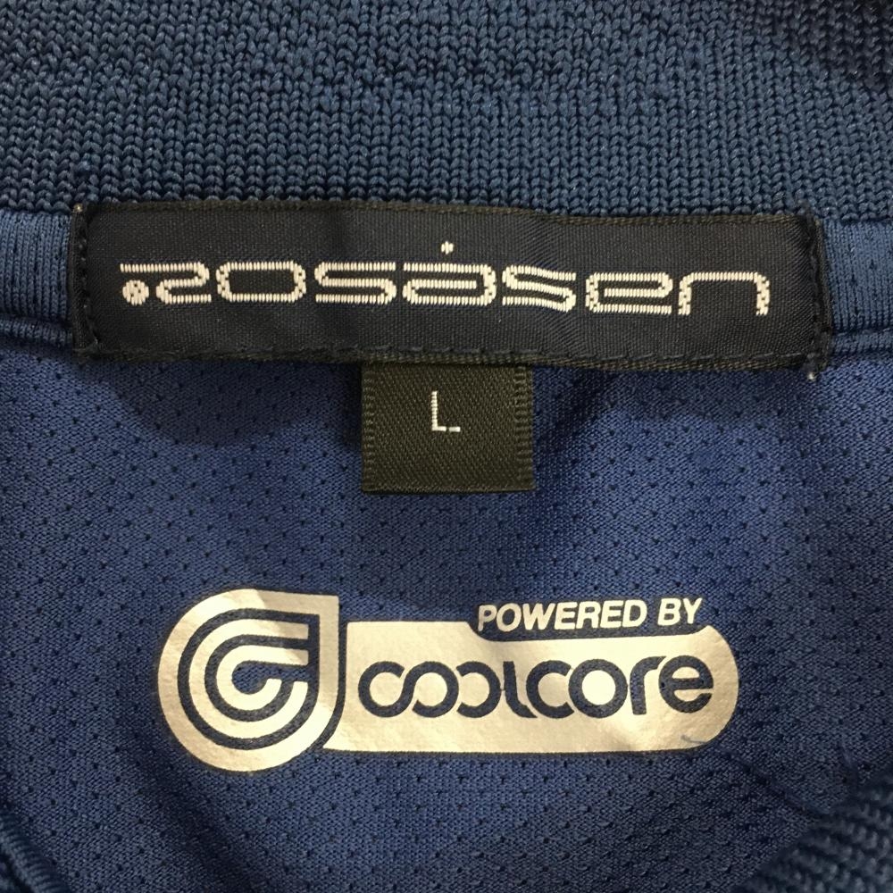 【美品】ロサーセン 半袖ポロシャツ ネイビーブルー 織生地 ロゴプリント coolcore レディース L ゴルフウェア Rosasen