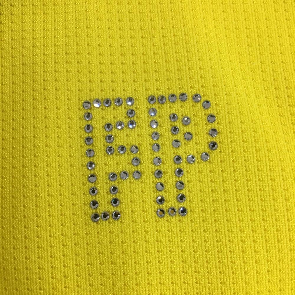 【超美品】フェアリーパウダー 半袖ポロシャツ イエロー メッシュ調 ラインストーンロゴ メンズ M ゴルフウェア