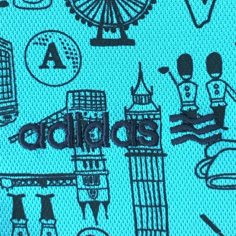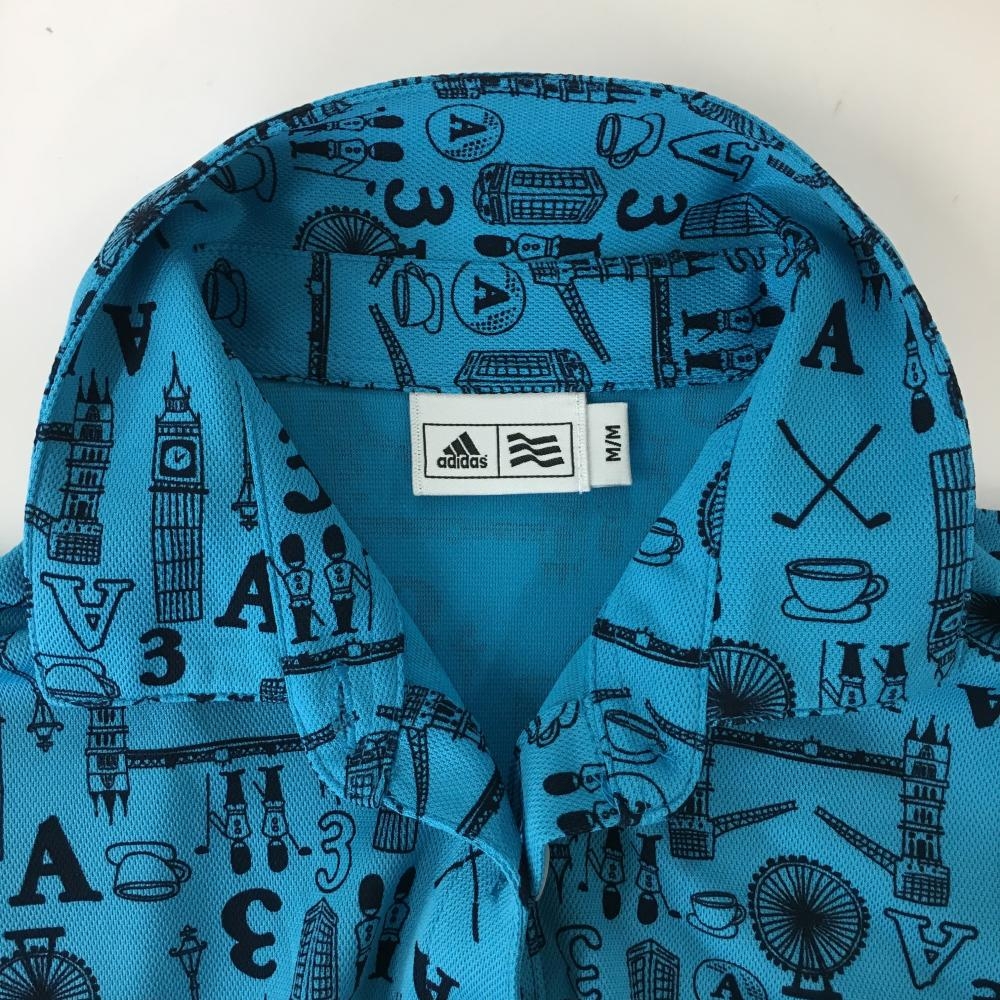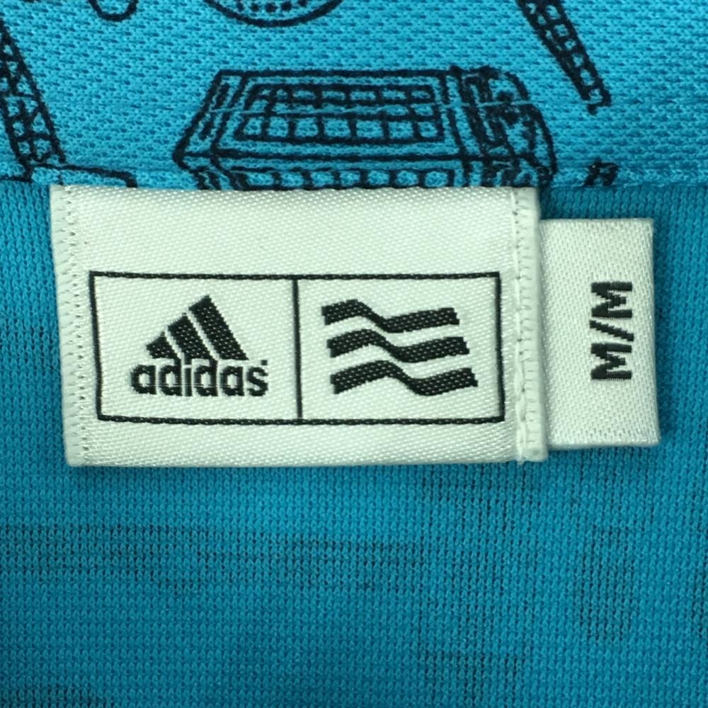 【美品】アディダス 半袖ポロシャツ ライトブルー×黒 総柄 レディース M/M ゴルフウェア adidas