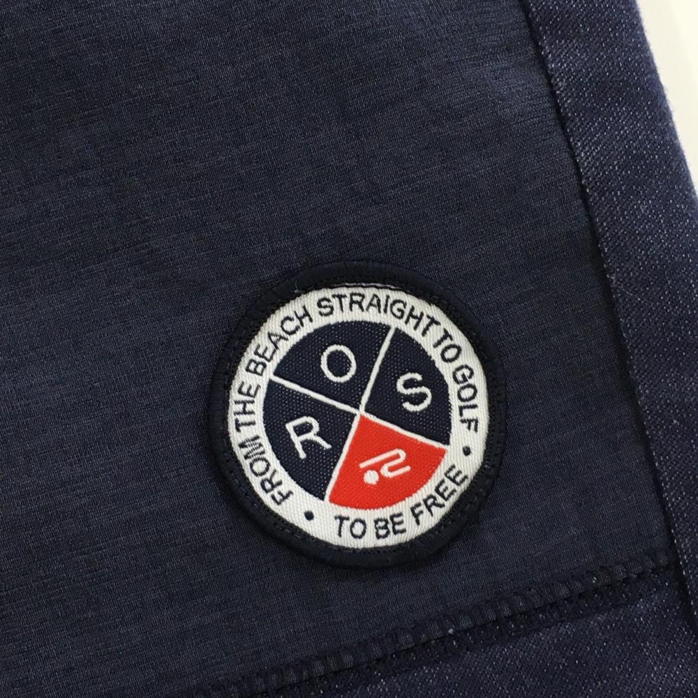 【美品】ロサーセン ショートパンツ ネイビー デニム風 ロゴワッペン レディース M ゴルフウェア Rosasen