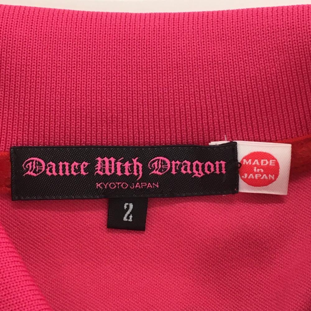 【美品】ダンスウィズドラゴン 半袖ポロシャツ ピンク スマイル ニコちゃん レディース 2(M) ゴルフウェア Dance With Dragon