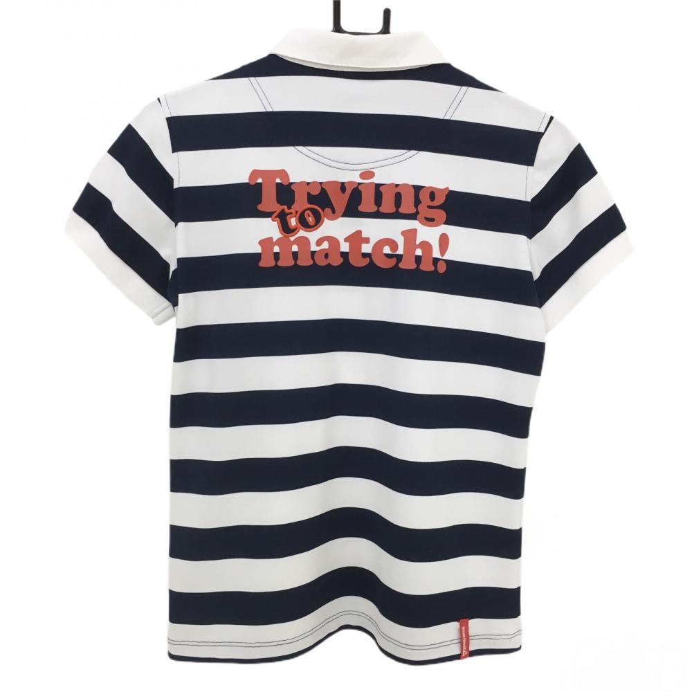 ルコック 半袖ポロシャツ 白×ネイビー ボーダー レディース L ゴルフウェア le coq sportif