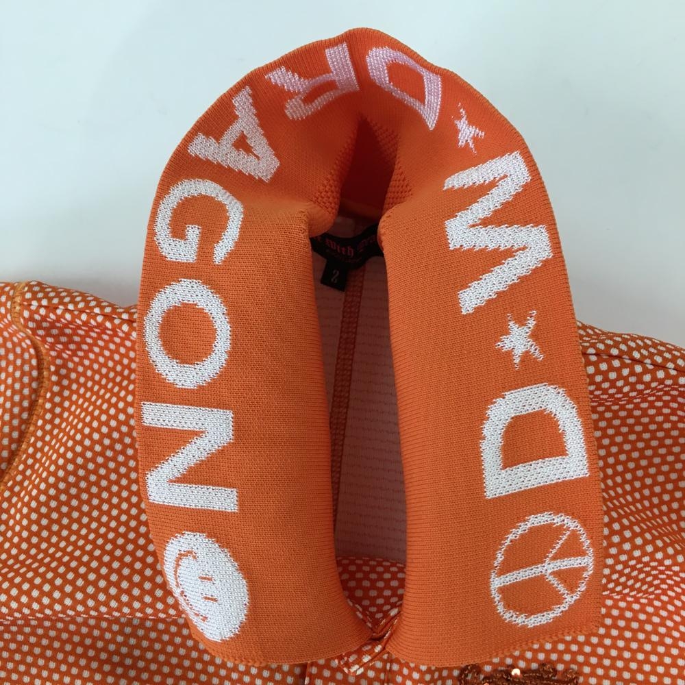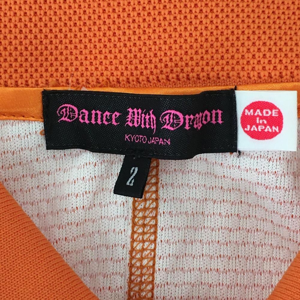 【超美品】ダンスウィズドラゴン 半袖ポロシャツ オレンジ×白 ドット 襟ロゴ レディース 2(M) ゴルフウェア Dance With Dragon