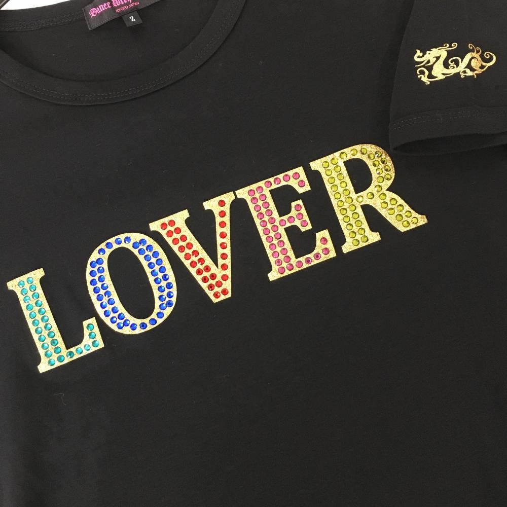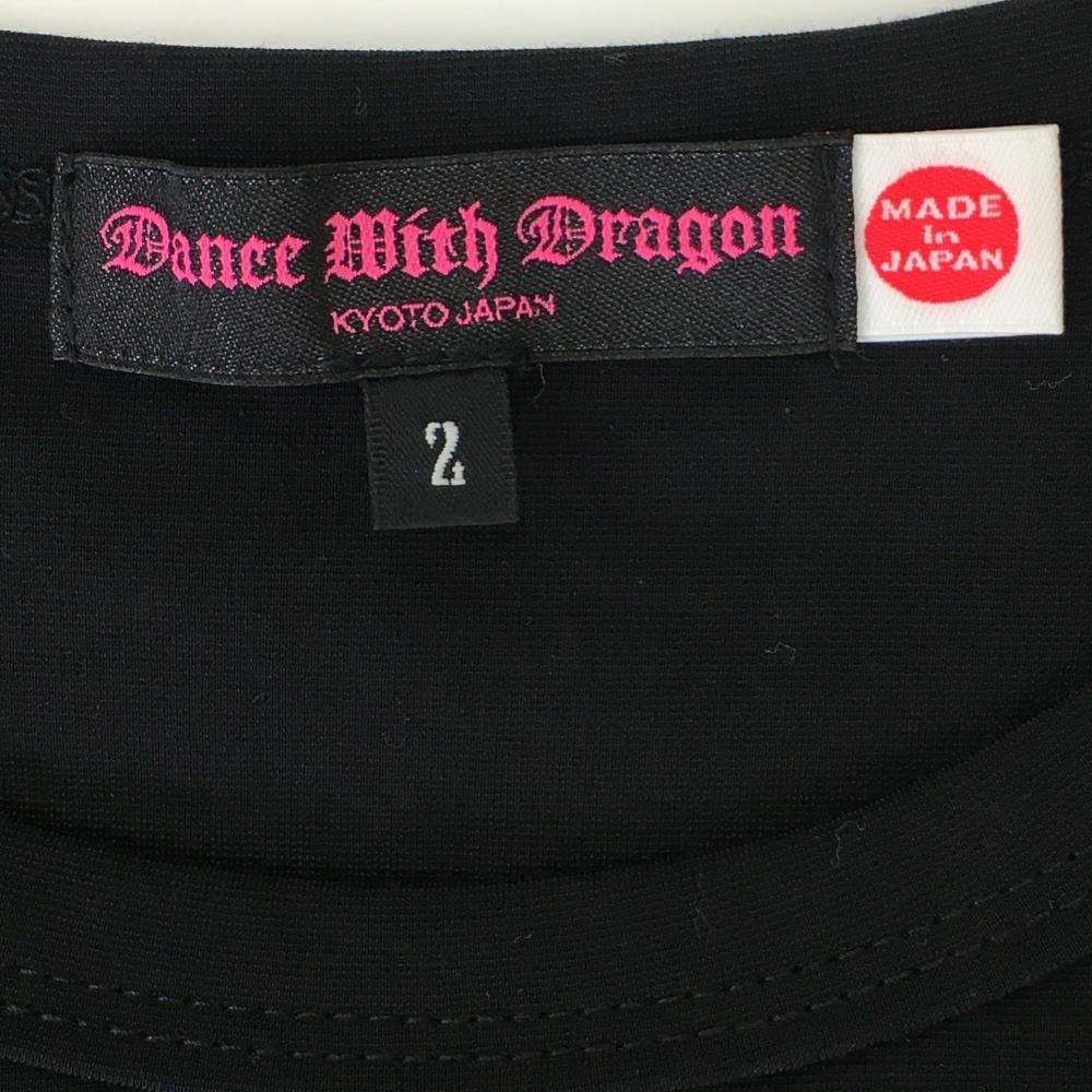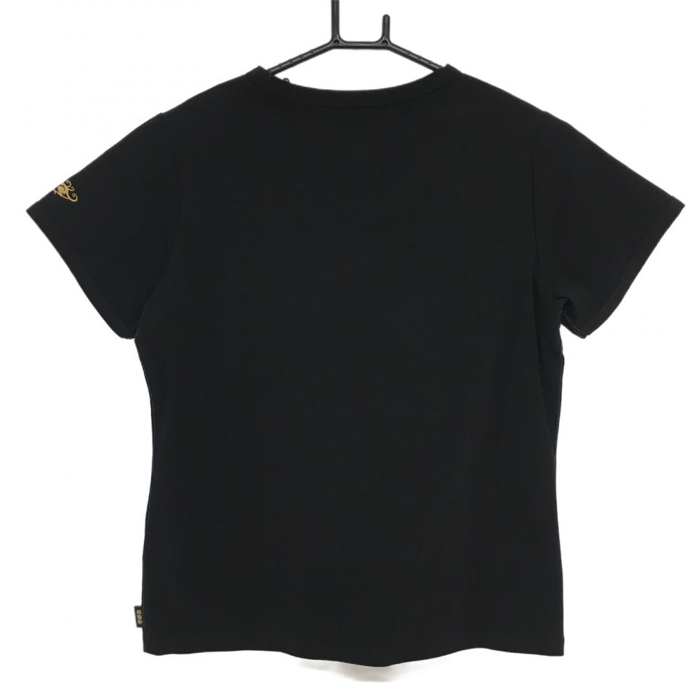 【超美品】ダンスウィズドラゴン 半袖Tシャツ 黒×ゴールド ラインストーン レディース 2(M) ゴルフウェア Dance With Dragon