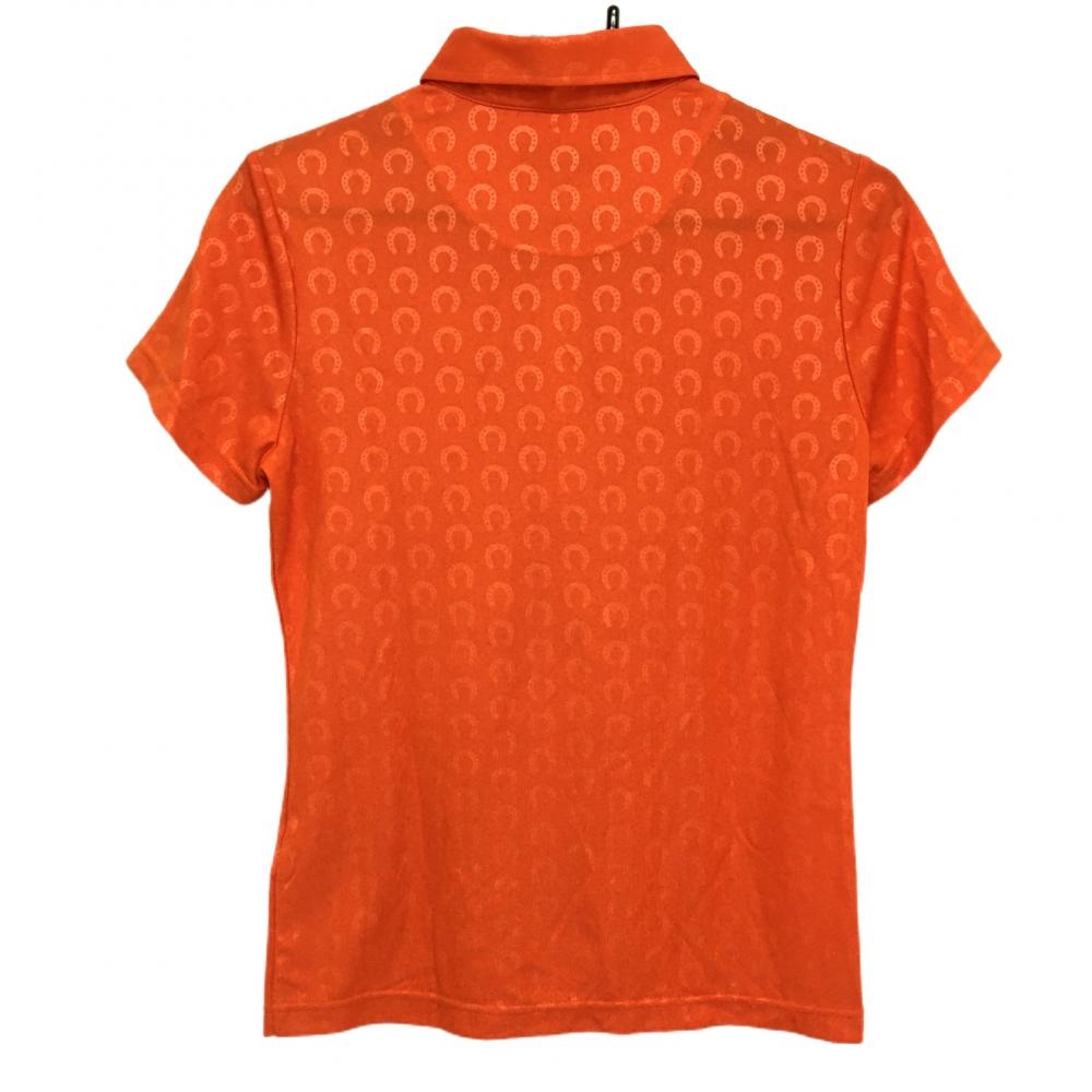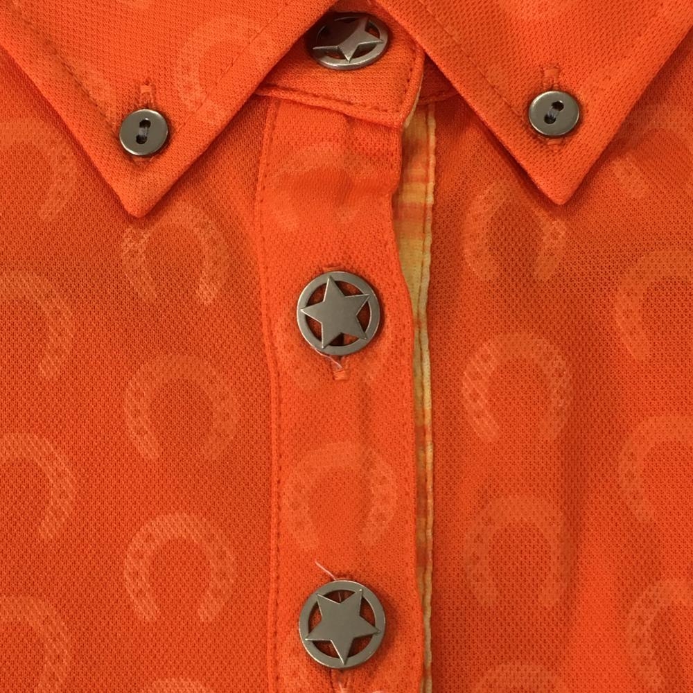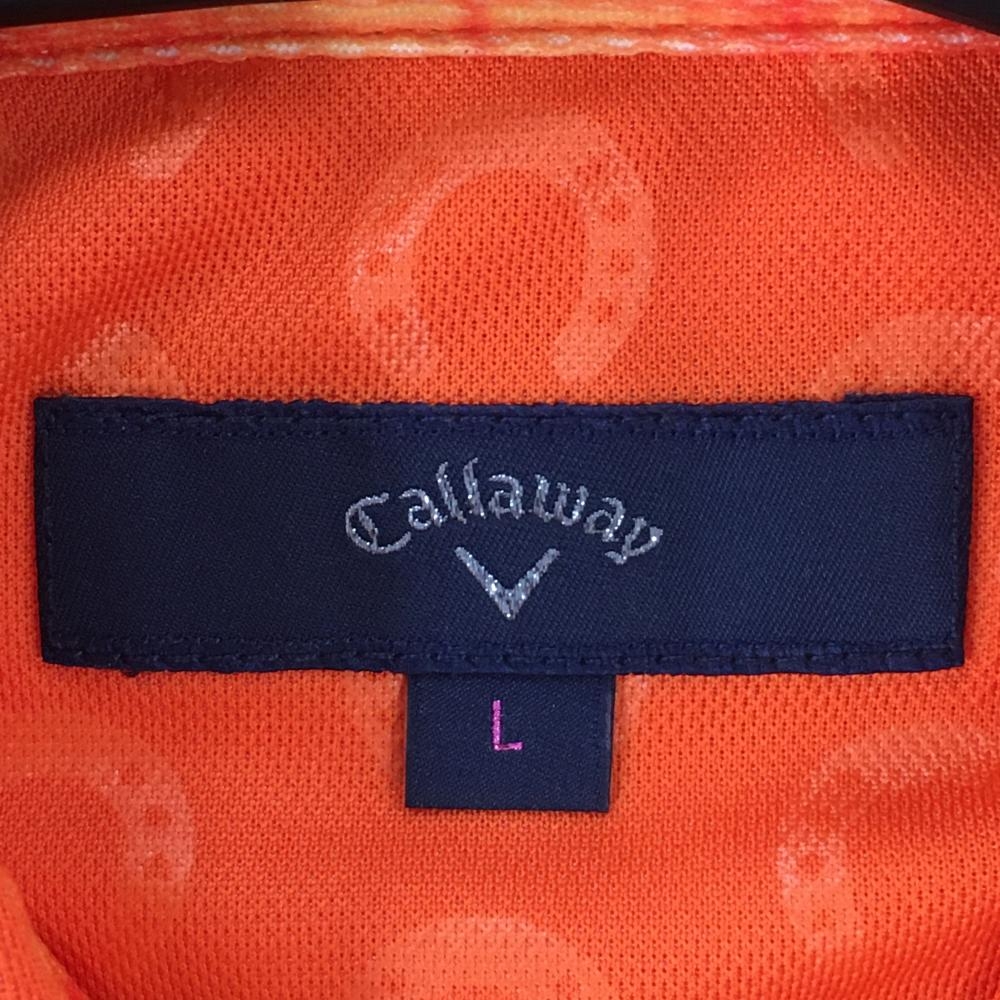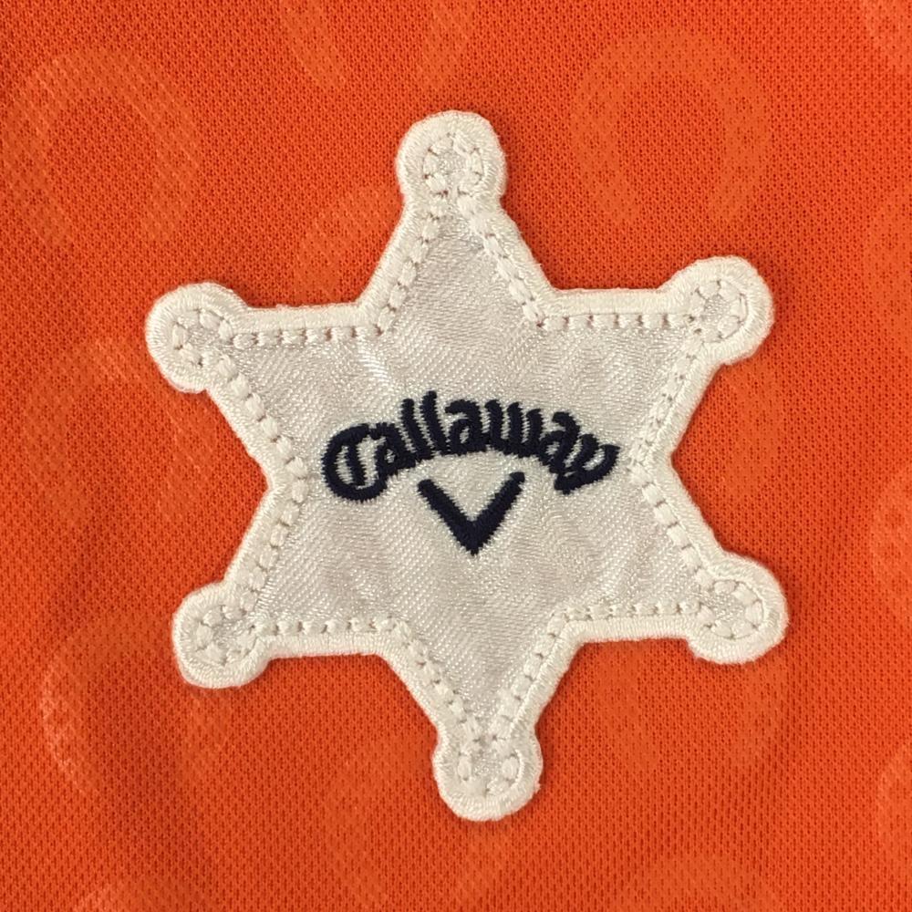 【超美品】キャロウェイ 半袖ポロシャツ オレンジ 地模様 ボタンダウン 星ボタン レディース L ゴルフウェア Callaway