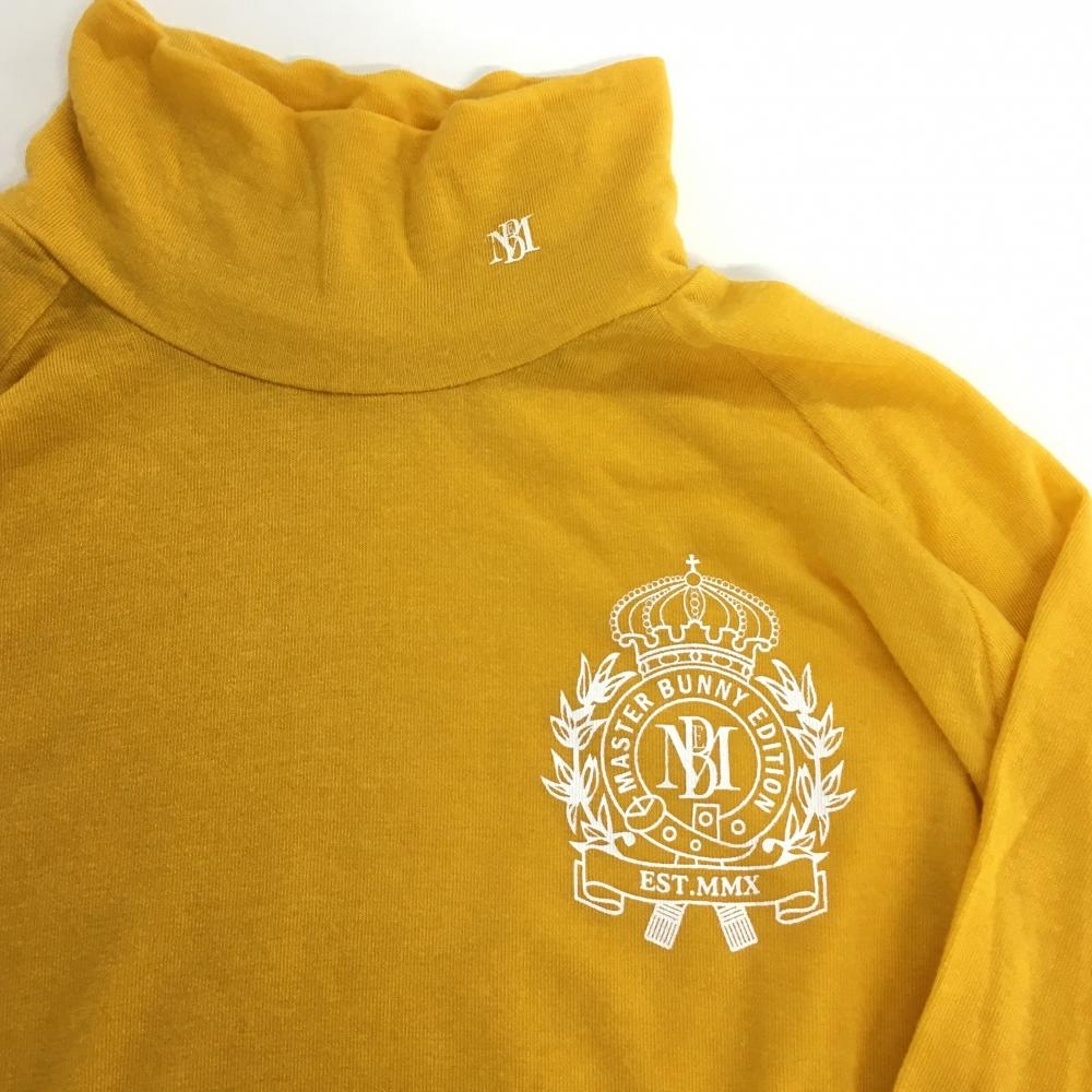 マスターバニー 長袖ハイネックシャツ オレンジイエロー×白 カシミヤ混 薄手 メンズ 2(L) ゴルフウェア MASTER BUNNY EDITION