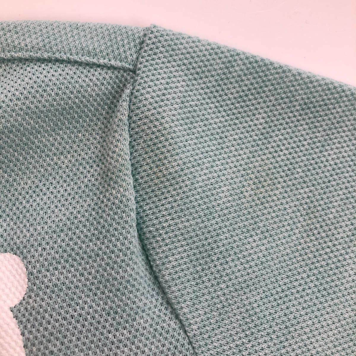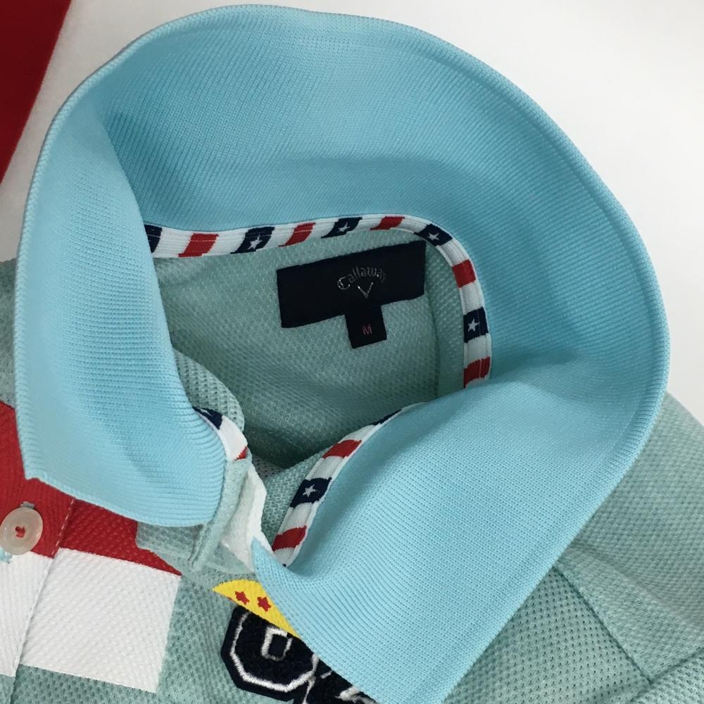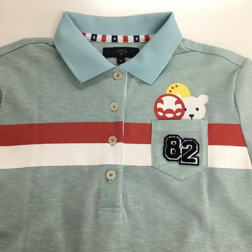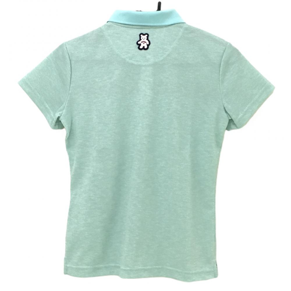 【美品】キャロウェイ 半袖ポロシャツ ライトブルー×白 ベア 胸元ライン パイル地ワッペン レディース M ゴルフウェア Callaway