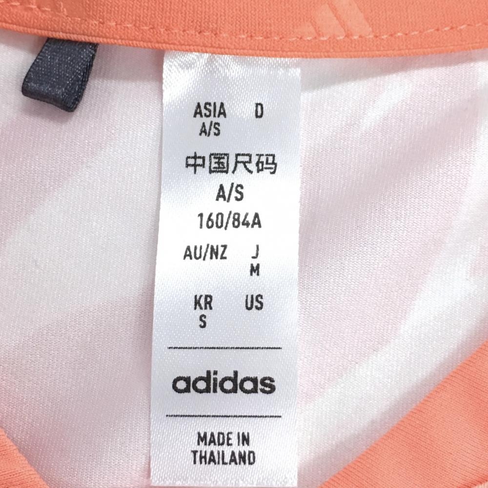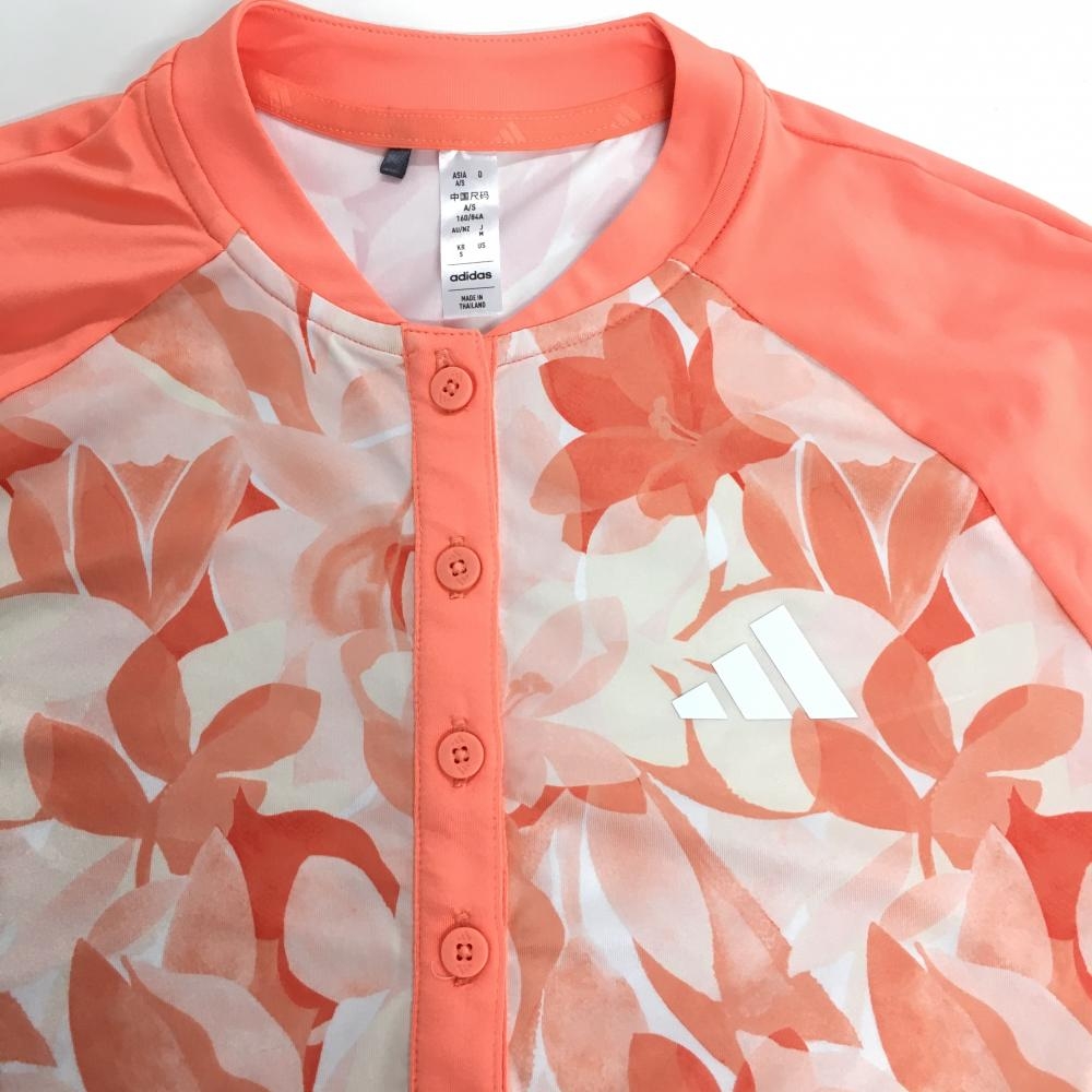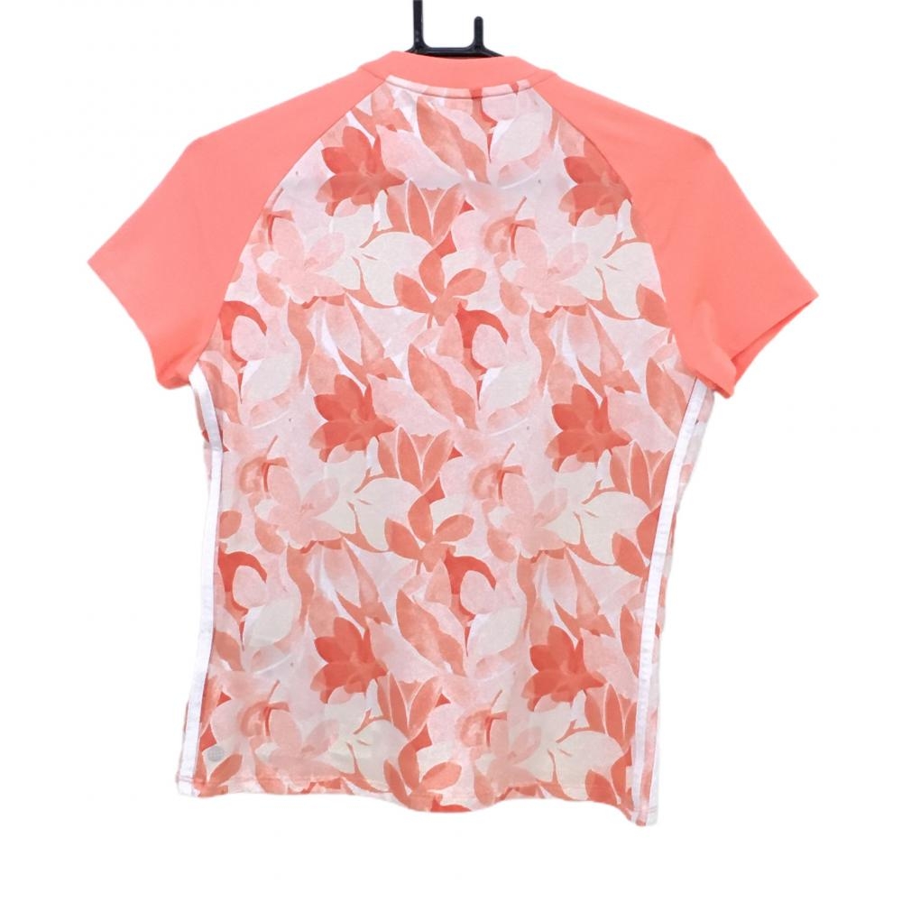 【超美品】アディダス 半袖ポロシャツ オレンジ×アイボリー 身頃花柄 サイド3ライン レディース M ゴルフウェア 2022年モデル adidas