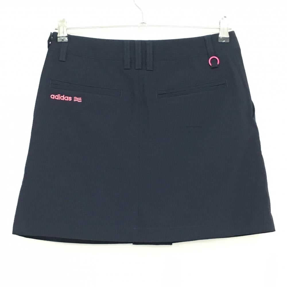 【超美品】アディダス スカート ネイビー×黒 チェック サッカー生地 ボックスプリーツ レディース S/P ゴルフウェア adidas