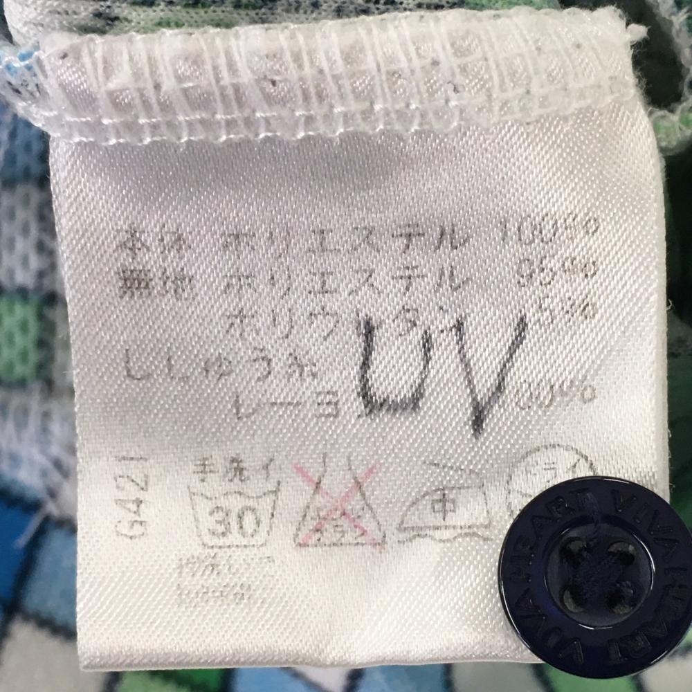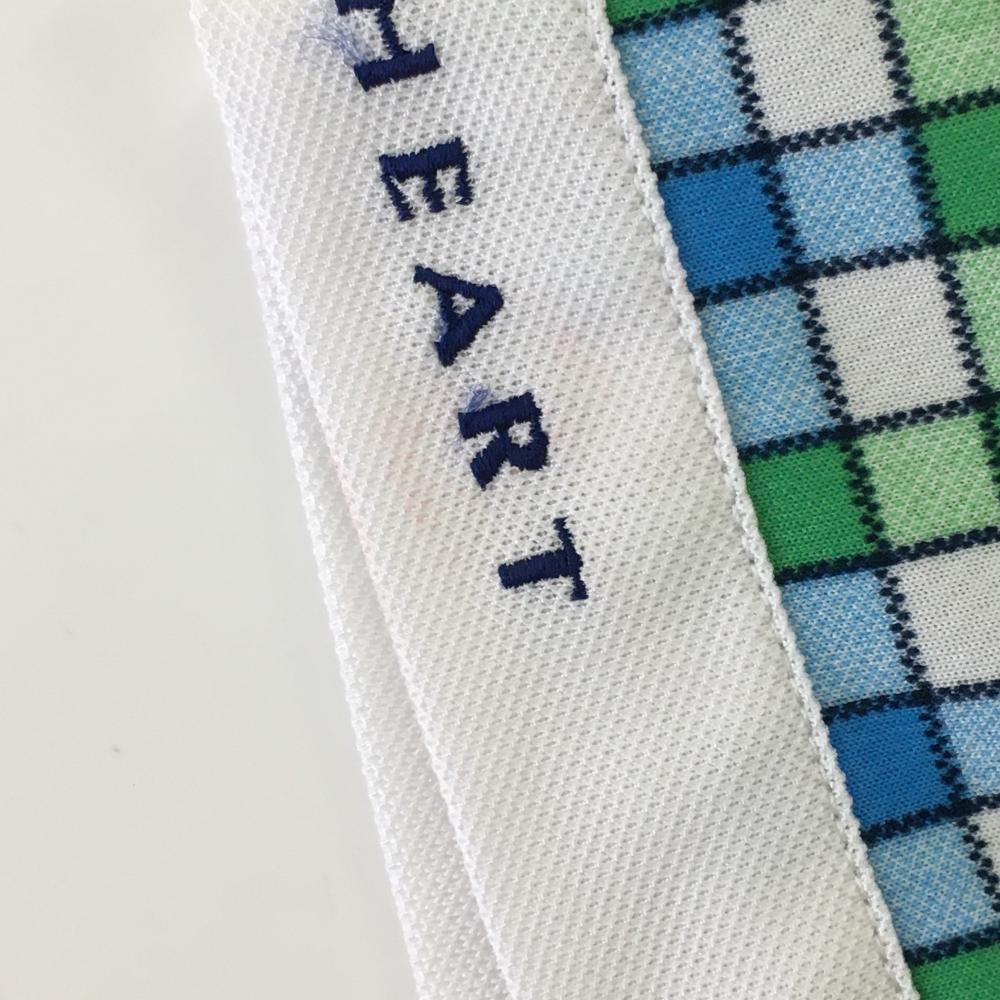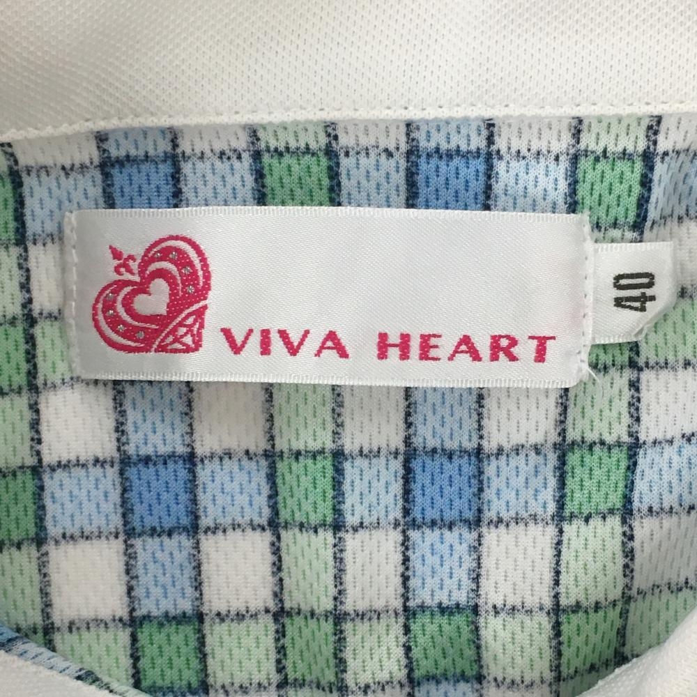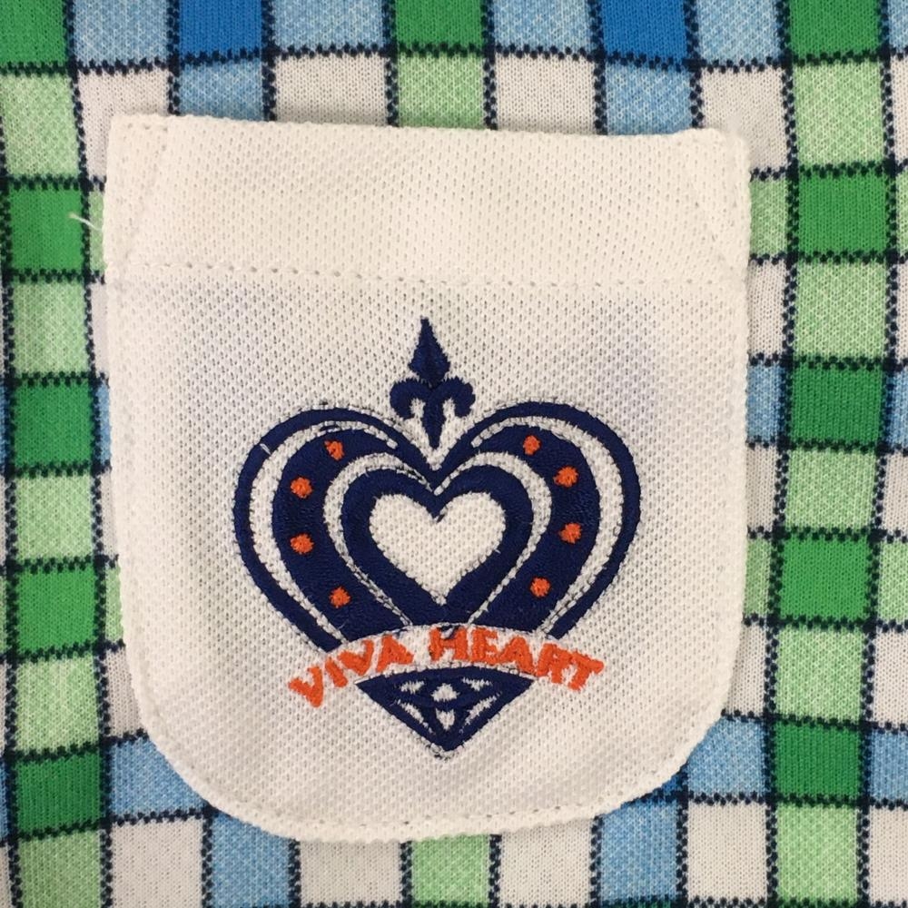 ビバハート 半袖ポロワンピース 白×グリーン チェック 胸ポケット ウエストリボン レディース 40(M) ゴルフウェア VIVA HEART