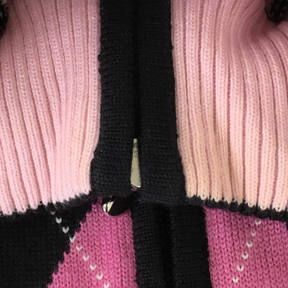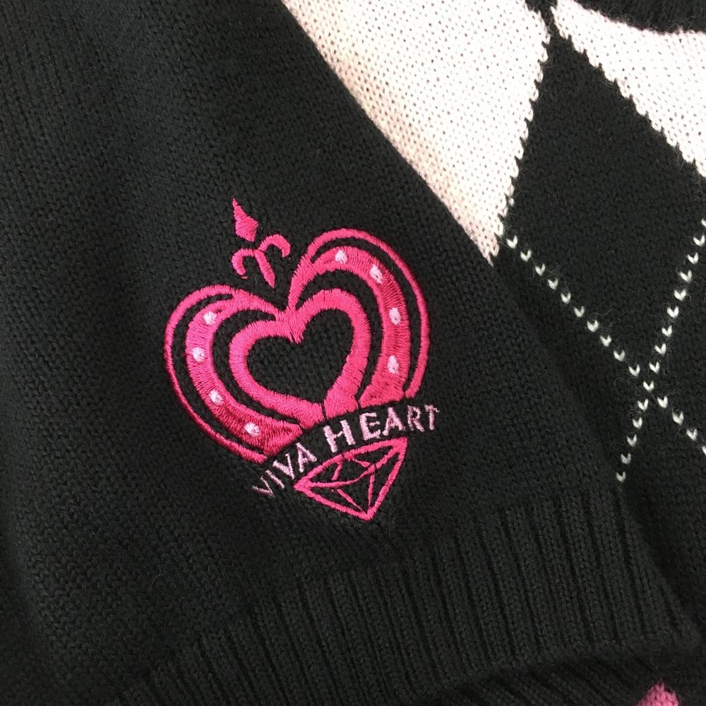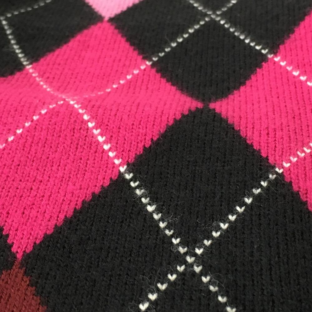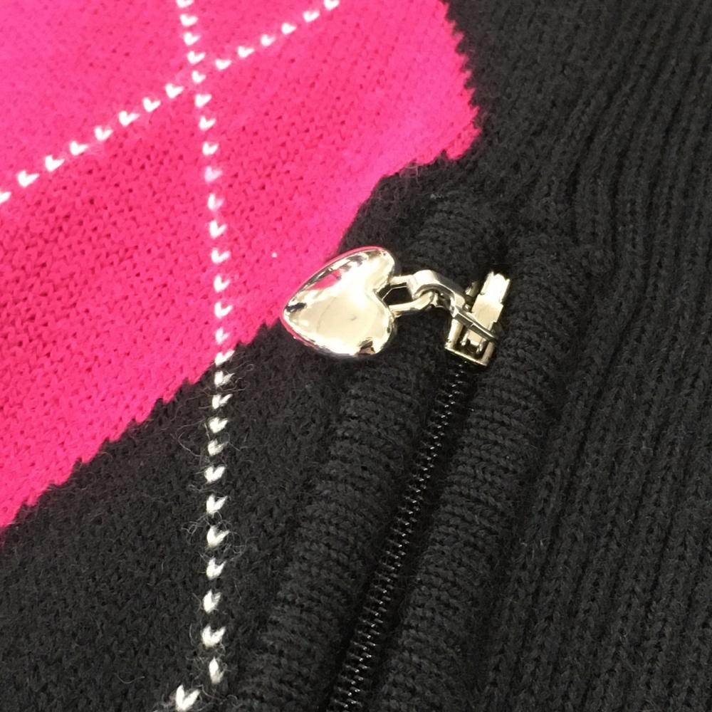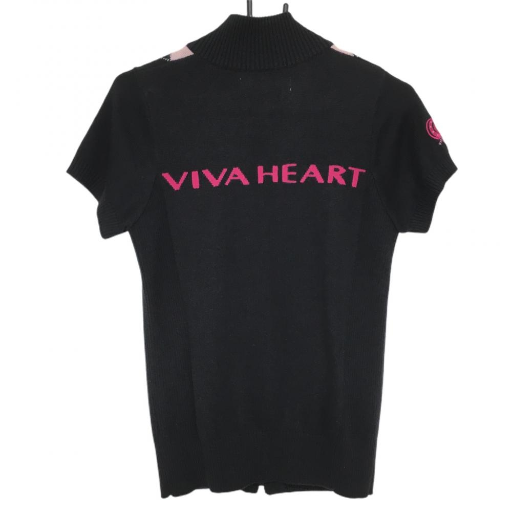 ビバハート 半袖ニットブルゾン 黒×ピンク アーガイル柄 ウール混 レディース 40(M) ゴルフウェア VIVA HEART