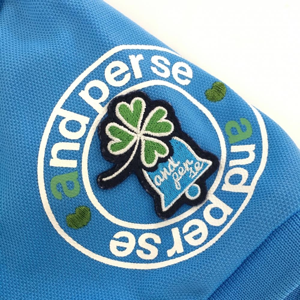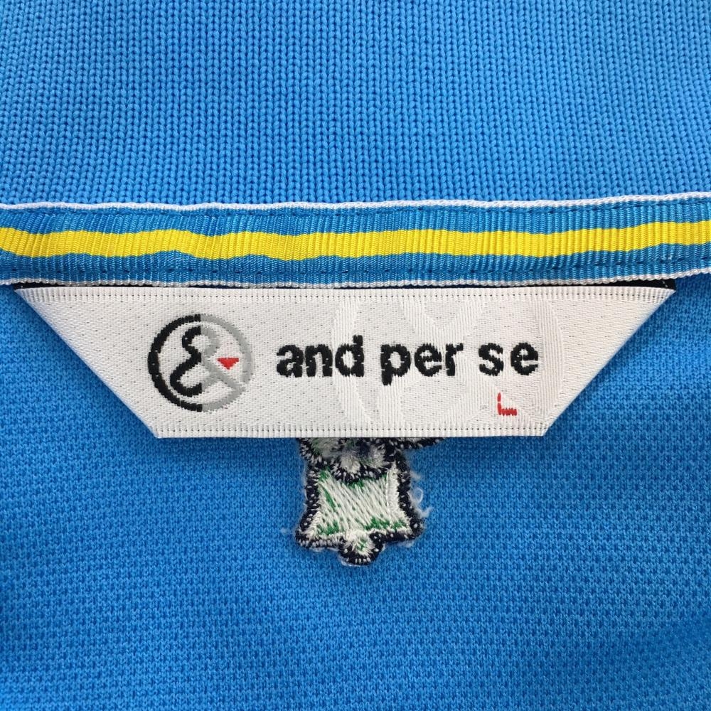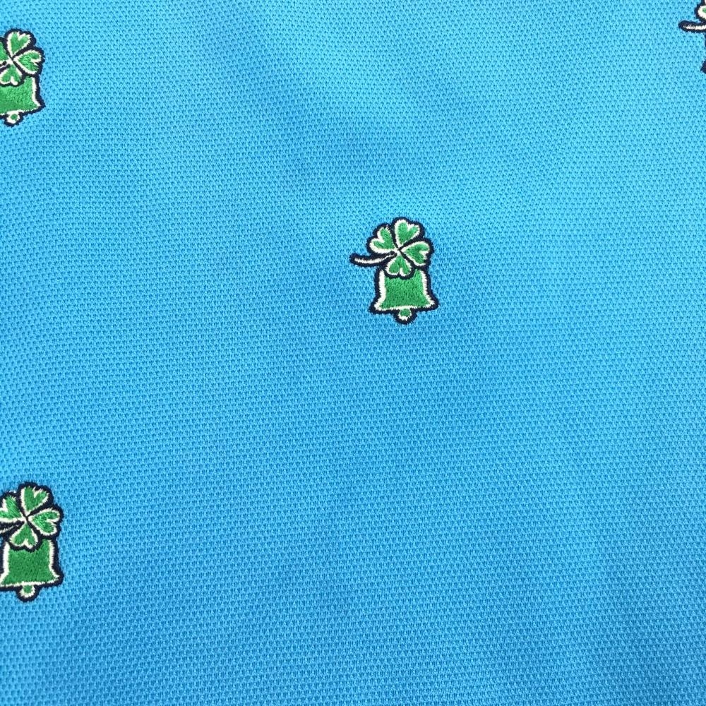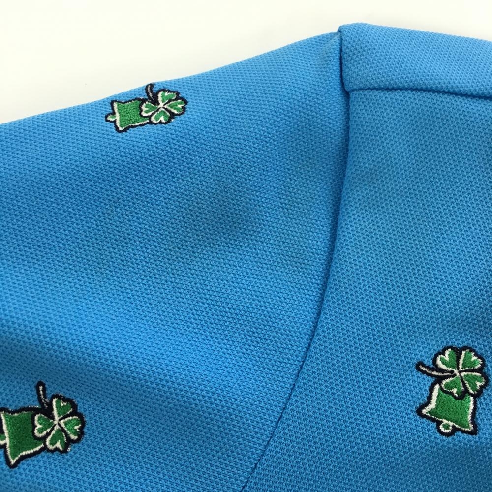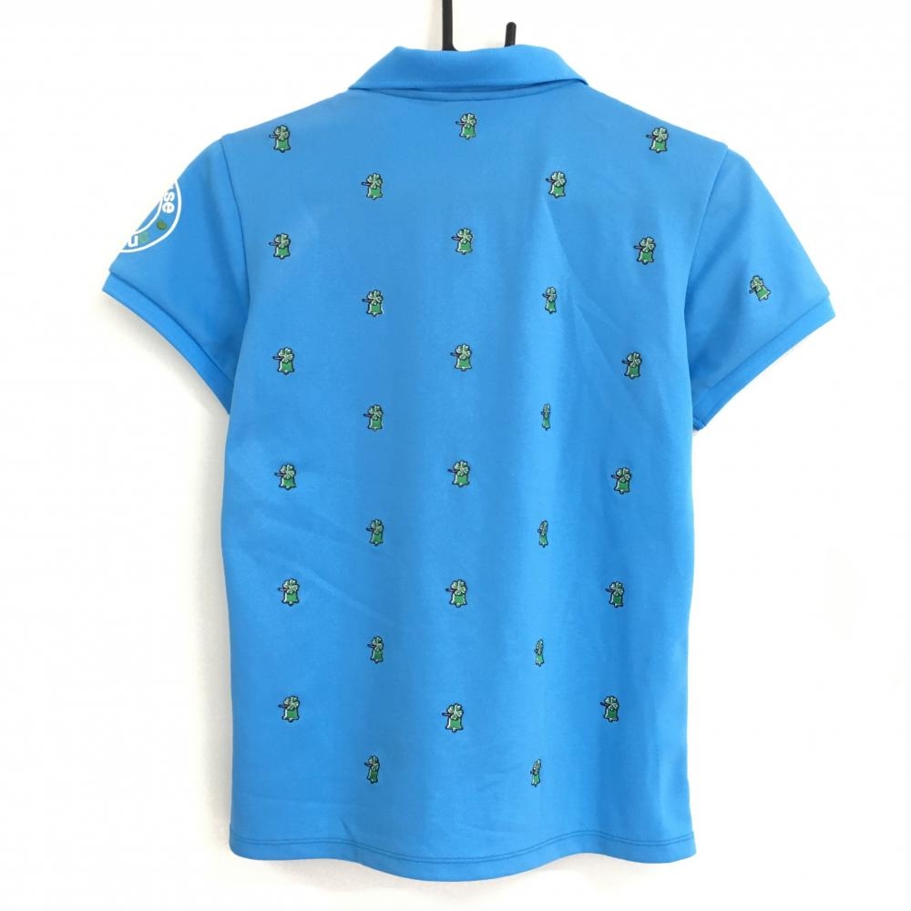 アンパスィ 半袖ポロシャツ ライトブルー×グリーン ベル柄 クローバー レディース L ゴルフウェア and per se